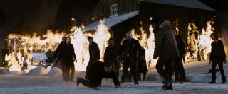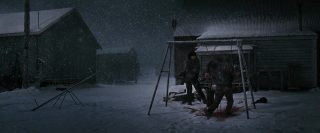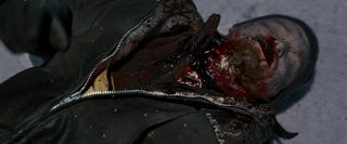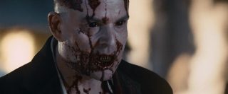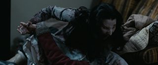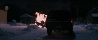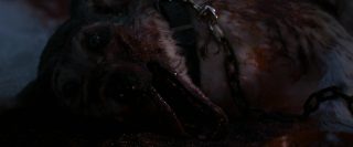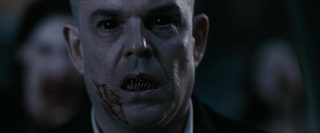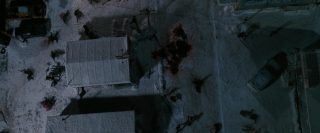 Mais on le sait, dans le cinéma d’horreur, rien ne se passe jamais comme prévu, bien que tout ou presque soit prévisible maintenant. La tranquillité de cette petite ville tranquille qui ne demandait rien à personne va vite être ébranlée, tout d’abord avec l’arrivée d’un mystérieux inconnu, que personne ne connaît, et qui, dés son arrivée, en profite pour massacrer tous les chiens de la ville et détruire tout moyen de communication. La nuit tombe alors, et la ville est coupée de tout, l’aéroport est fermé, et les habitants n’ont d’autres choix que de rester. Stella, la femme d’Eben, va elle aussi se retrouver bloquée dans la ville. C’est alors que les vampires commencent à arriver et à attaquer les humains. Tout d’abords discrets et sélectifs, en tuant par exemple quelques personnes égarées dans la neige, ils vont rapidement passer à la vitesse supérieure en tuant la majorité de la ville. Cette scène, fort réussie artistiquement parlant, notamment une vue du dessus filmée d’hélicoptère particulièrement saisissante, pose tout de même un petit soucis, celui de la nourriture. Les vampires déciment en une nuit quasi l’intégralité de la ville, ne laissant que quelques survivants qui parviennent à se cacher, en passant de bâtiments en bâtiments. Que vont-ils manger ensuite ? Cela ne gêne pas vraiment la vision du film, fort heureusement, vu la qualité du spectacle. Les vampires justement, sont très loin de ce que l’on fait normalement sur le sujet. On est très loin des films de vampires d’époque, beaux et sensuels, ici, ils ne représentent que carnages, sang et violence. Les vampires se jettent sur leurs proies tels des animaux affamés, et les divers affrontements sont violents et toujours saisissants. Le film se permettra même quelques hommages à d’autres films d’horreur, et surtout, fait intéressant pour le cinéma d’horreur de nos jours, surtout les films à budget confortable arrivant dans les salles, 30 jours de nuit est parfois très sanglant (coups de fusil, décapitation à la hache, morsures), et surtout, personne n’est épargné, que ce soit les personnes âgées, les femmes ou les enfants.