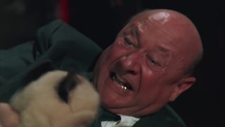 Mais juste avant, vous reprendrez bien un peu de nudité gratuite hein ? Pour faire passer la pilule. Non, plus sérieusement, le souci c’est que le scénario, s’il a parfois des bonnes idées, ne sait pas toujours quoi en faire. Parfois c’est classique et fonctionnel, à d’autres moments original mais totalement foiré, puis prévisible et laborieux, et ainsi de suite. American Rickshaw voudrait être un polar mystique mais devient souvent absurde. Car il y a des scènes, surtout vers la fin, il faut le voir pour le croire, c’est vraiment incroyable, et pas dans le bon sens du terme. Mention spéciale à l’attaque du chat en peluche, ainsi qu’au petit bonhomme en mousse pour un accident de camion, sans oublier ce grand final, nawak et blindé de faux raccords. Alors, ce n’est jamais ennuyeux, c’est court, concis et la narration est fluide, mais avec un tel bordel scénaristique, encore heureux, quand on passe du simple thriller à une grand-mère Chinoise psychique puis notre Donald Pleasence qui vient voler la vedette à tout le monde lorsque le film plonge dans le nawak… euh le fantastique je veux dire. Le tout avec l’année du tigre, des talismans, des complots, des chats, des cobras, une clé qui fond et traverse une main… et tiens, vous reprendrez bien un peu de nudité sur une jeune Chinoise non ? Pas terrible tout ça. Regardable, mais pas terrible. Heureusement, contrairement à d’autres réalisateurs, Martino a au moins un minimum de budget pour livrer un film qui ressemble à un film. Dommage que si la forme, ça va, le fond lui laisse à désirer, ou un peu tout et n’importe quoi semble avoir été balancé dans le script, jusqu’à une scène finale inoubliable, et pas pour les bonnes raisons, sauf si vous aimez les cochons.