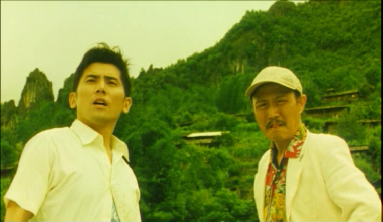 Ce qui est à la fois bien et beaucoup moins avec un cinéaste comme Miike, c’est que peu importe combien de films on regarde venant de sa bien longue filmographie, il y a toujours des films que l’on oublie, qui passent dans nos filets, ou de nouveaux qui sortent. Bird People in China pourtant, j’aurais dû écrire dessus depuis des années, vu qu’en France, Studio Canal avait eu l’idée de le sortir en DVD, en coffret avec Fudoh. Une belle initiative, même si avec le recul, on se demande pourquoi, à part le fait que les deux films soient réalisés par Miike avant que sa réputation internationale ne soit présente (ce qui viendra en 1999 avec Audition et Dead or Alive), Bird People in China se retrouve avec Fudoh, tant les deux films sont opposés. Quitte à faire un combo, Les Prisonniers du Paradis aurait été thématiquement plus intéressant à mettre avec Bird People in China, sauf que c’est Asian Star qui s’est occupé de ce film. Bref, des détails, parlons de ces personnages oiseaux en Chine. Miike, contrairement a beaucoup de cinéastes émergeant durant les années 90, a très rapidement montré une certaine fascination pour des cultures variées, pour la culture Asiatique de manière générale sans diaboliser ce que l’on pourrait considérer comme des étrangers pour les Japonais. Son personnage principal était sino américain dans Shinjuku Triad Society, il partait tourner aux Philippines pour Les Prisonniers du Paradis, il signait un remake d’un film Coréen avec Happiness of the Katakuris, et pour Bird People in China, et bien, tout est dans le titre, il emmène ses personnages en Chine. Notre personnage principal est un simple salaryman qui doit se rendre dans un petit village paumé en Chine pour trouver un gisement de jade pour remplacer un collègue.