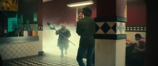 Pas la faute aux acteurs, car en soit, ils ont tous déjà prouvés par le passé qu’ils pouvaient être bons, que ce soit Woods, Bacon, Dinklage, Paige ou même Tremblay (impressionnant dans Doctor Sleep). Juste car au final, tenter de faire du Troma en donnant de la profondeur, c’est bien, mais si c’est pour atténuer tous les autres aspects, ça déséquilibre le tout et ça ne fonctionne plus vraiment. Sur l’intégralité du métrage, j’aurais dû sourire deux ou trois fois, avoir un rire, et être content devant un ou deux bras arrachés. Et la présence d’une reprise de Motorhead en bande son, oui, évidemment, me rappelait que Lemmy de Motorhead faisait souvent des caméos chez Troma. Mais à côté de ça, le film paraît très timide niveau gore, à tel point que si les effets pratiques sont bons, les autres en CGI sont ratés, mais pas dans le bon sens du terme. Mais aussi timide niveau humour. Ça veut se moquer un peu de ses personnages, ça veut critiquer les grosses sociétés, mais ça le fait au final de manière presque polie, sans prendre de risques, sans aller trop loin, alors que là aussi justement, Troma, c’est une liberté de ton qui défonce tout avec un mépris de sale gosse. Ne parlons même pas de l’autre élément clé des productions Troma, à savoir la nudité, réduite à deux plans furtifs pour un total de deux secondes à l’écran sur 1h40 de film. Et quand le film a quelques bonnes idées, il n’en fait pas grand-chose, à tel point qu’on regarde le film, sans jamais s’amuser, sans jamais rien ressentir. L’inverse encore une fois d’un film Troma, que l’on aime ou pas. On peut s’éclater devant, ou trouver ça terriblement con et vulgaire, mais au moins, on a une réaction. Ici, rien de rien, c’est trop sage. Kevin Bacon et Elijah Woods ont beau avoir l’air de s’éclater en méchants, le premier finit dans le grand n’importe quoi plutôt embarrassant et le second n’a que peu de temps à l’écran pour vraiment exister. Une catastrophe prévisible depuis l’annonce du projet donc ? En quelque sorte malheureusement. Pas de quoi relancer Troma ni leur donner un boost de visibilité au final, et surement pas de quoi satisfaire le fan. Encore une fois, certes, Troma a fait pire par le passé, mais là, on parle quand même du grand retour du personnage. Et autant dire qu’on l’aura très vite oublié ce remake.