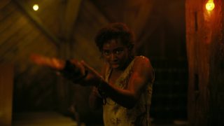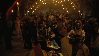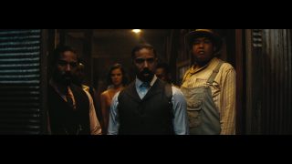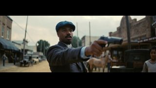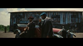 En promettant de l’alcool, une bonne ambiance, et du blues. Pour que ça fonctionne, ils ramènent du bon monde, Slim (Delroy Lindo) et Sammie (Miles Caton) pour jouer sur scène du bon blues, et le tour est dans le sac. Sinners, bien entendu, est un film engagé déjà, qui a des choses à dire, sur la communauté noire, sur la musique, sur l’appropriation culturelle de cette musique. On pourrait dire que situer donc l’intrigue dans les années 30, où la situation était compliquée et le KKK aux alentours, c’est un peu la solution de facilité, mais pour qui aime un minimum les films de malfrats d’époque, ça fonctionne malgré tout du tonnerre. Et donc, comme pour Une Nuit en Enfer, Sinners est clairement découpé en deux parties. La première donc, la plus calme, durant une bonne heure, nous montre l’organisation de la fameuse soirée, le recrutement des musiciens et d’autres personnes qui donneront un coup de main, comme Wunmi Mosaku et Li Jun Li (oui, il n’y a pas que des noirs dans ce film), et l’irruption d’autres personnages pour pimenter un peu le tout, notamment Hailee Steinfeld, jouant l’ex d’un des deux frères. Et si cette première heure est relativement lente, elle met plutôt bien en place toutes les pièces de l’échiquier, et surtout, le fait avec sérieux et en s’appliquant. Les décors sont beaux, la photographie sublime, les musiques entrainantes, et le casting plus que convaincant. Mais contrairement à Rodriguez et Tarantino, Coogler ne laisse pas planer le doute très longtemps, insérant dans son récit quelques éléments annonciateurs de ce qui arrivera par la suite, et donc venant un peu casser la surprise de ce qui viendra après. C’est dommage, bien que toujours finement filmé. Mais dommage. Et comme point de bascule, là aussi, tout se fera en musique.