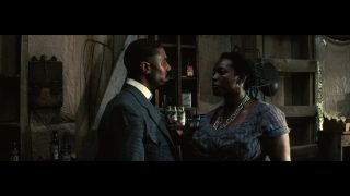 Mais pas de danse sexy de la part de Salma Hayek, à la place, un bon morceau de blues, entrainant, et que le réalisateur décide de mettre en image en se servant tout simplement d’un concept énoncé dès l’introduction, et livrant donc un plan séquence assez impressionnant (surtout qu’il fut tourné en imax). Et qui dit imax dit comme toujours changement de format d’image, passant du 1.43 au 2.76. Contrairement à certains comme Nolan par contre, Coogler n’abuse pas, tournant peu de scènes en imax, mais des scènes longues, ce qui ne fait pas jongler constamment son film entre les deux formats. Et donc, passé cette scène impressionnante, le film bascule dans l’horreur, d’abord doucement, en respectant les codes du film de vampire (l’invitation pour rentrer dans un lieu, l’ail), puis en se voulant plus musclé. Malheureusement, si dans sa montée en tension, Coogler s’en sort encore très bien, il se montre bien moins convaincant quand il veut verser dans l’action pure, sans doute limiter dans la folie visuelle par le tournage avec les caméras Imax. Même sans ça, ce qu’il filme, bien que toujours appliqué (visuellement, il n’y a pas de fausses notes), reste un peu trop timide dans les faits pour faire office de réel film d’horreur. La grosse scène d’action finale par exemple manque d’ampleur, de folie, pour réellement marquer, alors que tout menait à ça. Reste que dans le paysage actuel, le film, à l’image d’un Weapons ou Bring Her Back, fait plaisir, et prouve que le public veut aussi voir de nouvelles choses, et pas une énième suite ou univers étendu.