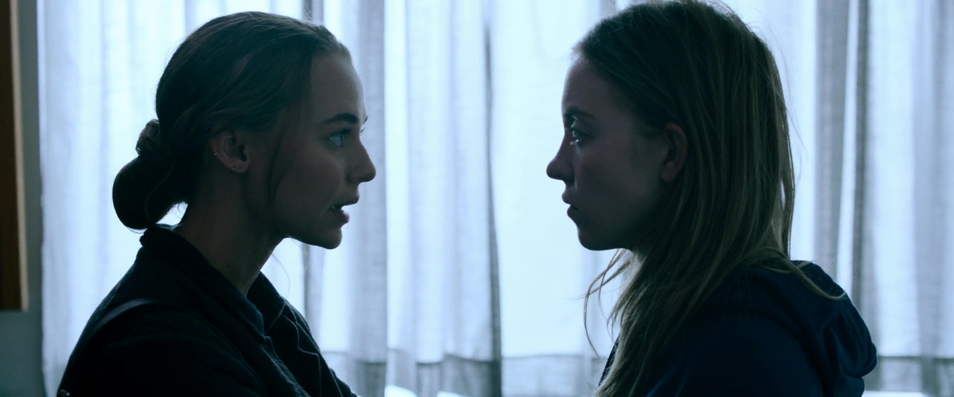 Déjà, évidemment, il y a le casting, même si le scénario n’exploite pas tous les acteurs et actrices comme il le faudrait. Car c’est bien d’avoir Julie Benz pour jouer la mère, elle qui avait brillée durant les quatre premières saisons de Dexter (ou qui se faisait sauver dans John Rambo), mais au final, son rôle fait plus office de figuration qui vient faire coucou le temps de deux ou trois scènes et voilà. Heureusement, au premier plan, c’est déjà bien plus maitrisé, puisque le premier rôle, Juliet Lowe, se voit prendre les traits de la charmante Sydney Sweeney, décidemment souvent à l’aise dans l’horreur, ou dans les rôles qui pètent des câbles. Pour sa jumelle Vivian, le film n’a pas la prétention, ni l’ambition, ni le budget (ni le talent) de faire comme Fincher sur The Social Network et donc d’incruster Sydney Sweeney sur le corps d’une autre pour en avoir deux à l’écran, et c’est donc Madison Iseman qui s’y colle, que l’on avait pu voir dans les nouveaux Jumanji, ou dans la série Amazon annulée après une saison Souviens-toi… l’été Dernier. Et les deux actrices se donnent à fond. Autour d’elles, évidemment, d’autres élèves, des professeurs, l’administration de l’école, mais finalement, tout cela n’est que secondaire, le film collant au plus près de Juliet et du fameux livre qu’elle trouve. Lassée de vivre dans l’ombre de sa sœur Vivian, Juliet va donc suivre les pas de la défunte à qui le cahier trouvé appartenait, quitte à perdre le sens des réalités, et à voir les funestes dessins contenus dans le cahier prendre vie. Nocturne, s’il reste prévisible dans les grandes lignes, jusqu’à son final attendu, à de quoi surprendre sur d’autres aspects donc, et de quoi plaire. Déjà car le film délaisse donc le contenu habituel des productions Blumhouse pour faire sa propre tambouille dans son coin. Pas d’esprits frappeurs, pas de jumpscares, pas de gore non plus évidemment, mais plutôt une horreur ésotérique là pour nous faire douter de ce que le film nous montre, et de la santé mentale de Juliet.