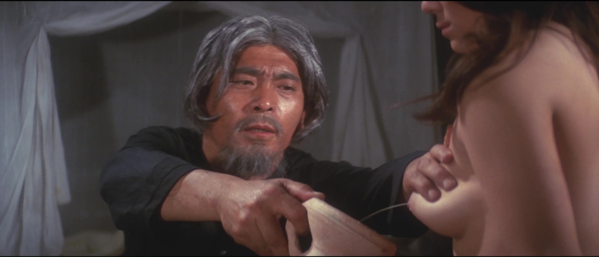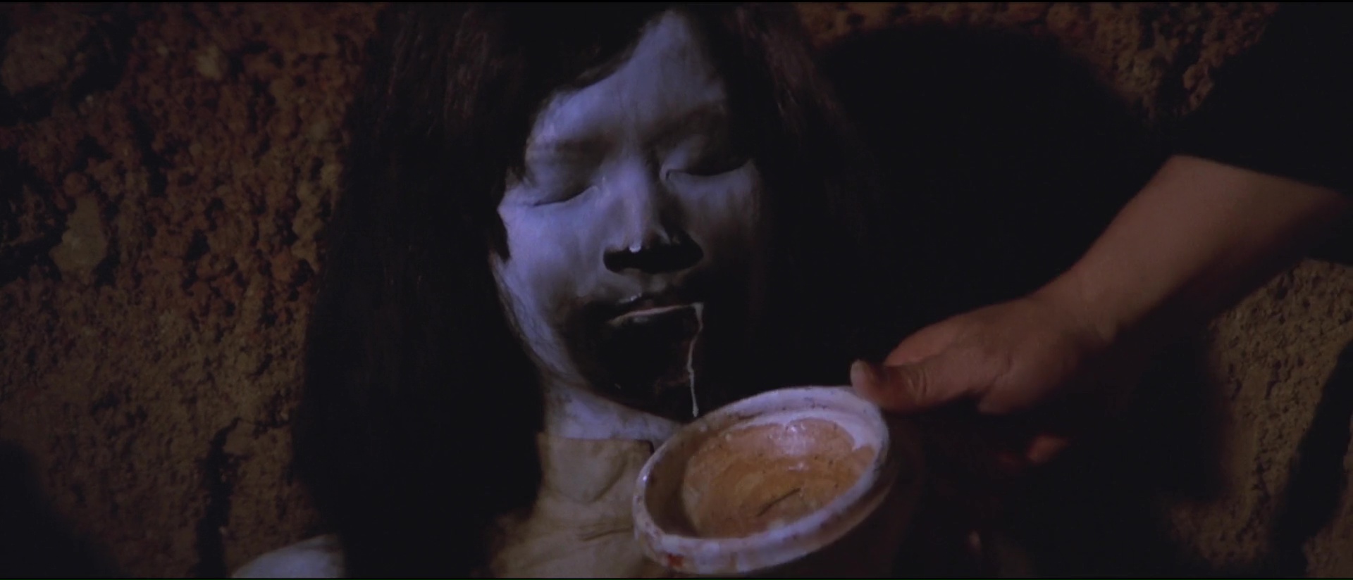 Et même sans les éléments cités, Black Magic a quelques atouts pour lui. Un charme dans sa mise en scène et sa photographie, typiques des années 70 et donc avec un charme indéniable, une certaine classe qui n’existe plus de nos jours. L’histoire ? Simple comme souvent, une veuve jette son dévolu sur Xu Nuo, un ouvrier. Pourquoi lui alors que tous les hommes veulent la jeune femme et que lui n’est qu’ouvrier ? Mystère et boule de gommes. Sans doute car Xu Nuo est le seul homme qui lui résiste, et que forcément, un peu de résistance, ça attire. Sauf que notre vaillant héros, il est en plus sur le point de se marier, et ne compte donc absolument pas céder aux charmes de la jeune femme. Qui ne compte pas lâcher l’affaire, loin de là. Du coup, la seule méthode qui lui viendra à l’esprit après avoir été elle-même victime d’un sort : utiliser la magie noire pour que Xu Nuo ne veule qu’elle, pendant une durée d’un an. Bon, niveau timing, elle s’y prend un peu mal, puisque le fameux sort deviendra effectif après le mariage de notre héros. Donc, un amour à sens unique, de la magie noire, un sorcier qui n’hésite pas à tuer et qui a un amour certain pour le lait maternel à tel point que je vais finir par croire que pour Visitor Q et Gozu, Miike s’est inspiré de ces films là, tout est réunis pour un film d’horreur sympathique à une époque où Hong Kong n’était pas forcément réputé pour ce genre de films, l’époque de la Cat III n’étant pas encore là. Seulement on ne va pas se mentir, ce premier Black Magic échoue dans pas mal de domaines et reste une œuvre finalement mineure, un petit film horrifique qui se regarde, n’est pas désagréable, mais ne parvient jamais à marquer les esprits.