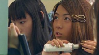 Le personnage servant de fil conducteur à l’intrigue, c’est Lisa (Okamoto Yukiko), qui se rend à Shibuya pour passer sa dernière journée avant son départ pour New York, en espérant se faire un peu d’argent. Vente de son uniforme et de petite culotte en boutique, tournage de vidéo, sauf que tout ne se passe pas comme prévu, on lui vole toutes ses économies, et elle a donc basiquement jusqu’au lendemain 11h du matin pour se refaire. Elle va sympathiser tout d’abord avec Raku (Satô Yasue), qui va lui présenter Jonko (Satô Hitomi), et ensembles, elles vont plonger dans la vie nocturne de Tokyo en arnaquant ceux à leur portée, mais aussi des proies beaucoup trop grosses comme des hommes politiques aux liens plutôt étroits avec des organisations criminelles. Le sujet, il n’est pas nouveau, mais il est ici clair et frontal dés l’ouverture, avec Maru, une autre étudiante, qui doit avorter, puis qui fait les boutiques, se trouve un homme plus âgé, le fait dépenser de l’argent, et compte l’arnaquer sans aucun service à lui rendre. Mais oui, ça ne se passe pas toujours comme on veut, et le retour de bâton est parfois rude. Prostitutions des mineures, ventes de petites culottes à des pervers, tournage de vidéos pas forcément légales, humiliations contre un peu d’argent, tout y passe sous la caméra de Harada Masato qui suit toujours ses personnages de près, documentant ces milieux interdits. On aurait pu craindre un propos simpliste voir facile, en diabolisant tel ou tel camp, mais ce n’est pas vraiment le cas, et certains dialogues, comme cette discussion entre Jonko et Oshima (Yakusho Kôji) sont plutôt pertinentes et habiles. Car oui, il y a un commerce pour des culottes, oui il y a des gens prêts à profiter de mineures, des messageries pour hommes seuls qui espèrent trouver un peu de compagnie.
