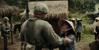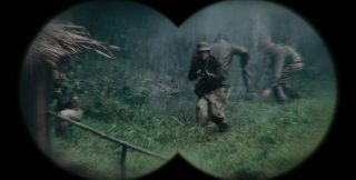 Depuis l’arrivée de son trailer, Primitive War me faisait de l’œil. Un mélange improbable entre Jurassic Park et Apocalypse Now. Et surtout, de quoi faire un peu oublier la douche froide que fut le dernier Jurassic World. Imaginez un peu, le Vietnam, en 1968, des militaires bad-ass, des missions impossibles dans la jungle, où le danger ne vient pas forcément, enfin, pas uniquement du camp adversaire en temps de guerre, mais de grands dinosaures prêts à bouffer le casting. Des vélociraptors, des T-Rex, tout ce que l’on connait, tout ce que l’on aime. Et on peut le dire d’emblée, oui, Primitive War, c’est cool. Loin d’être parfait, mais faisant tout à fait ce qu’il a en tête. A savoir être une série B, bien fichue, généreuse, faite par un passionné, Luke Sparke, que l’on trouve à pas mal de postes d’ailleurs (scénariste, producteur, superviseur des effets visuels, designeur, monteur et j’en passe). C’est clairement son film. Et en réalité, dans le fond, on pourrait rapprocher le métrage à un autre métrage produit dans des conditions un peu similaires et ayant des ambitions tout aussi similaires : Monsters of Man. Un autre petit film, indépendant, avec un réalisateur présent a pas mal de postes, lorgnant clairement vers le bon gros B movie, avec beaucoup d’effets spéciaux. Et d’ailleurs, le rapprochement va plus loin, puisque dans les deux cas, le plus gros défaut des métrages sera leur durée. 2h10 environ dans les deux cas. Et oui, autant nous sommes aujourd’hui habitués aux gros blockbusters de cette durée-là, autant lorsque l’on lorgne du côté de la série B, aussi grosse et prestigieuse soit-elle, 2h10, ça peut souvent commencer à faire long. Voilà, il fallait le dire d’entrée de jeu. Des défauts, Primitive War en a, d’autres, pleins.