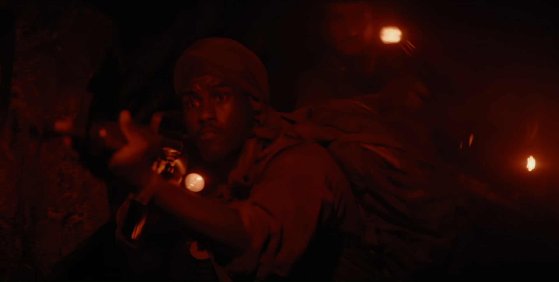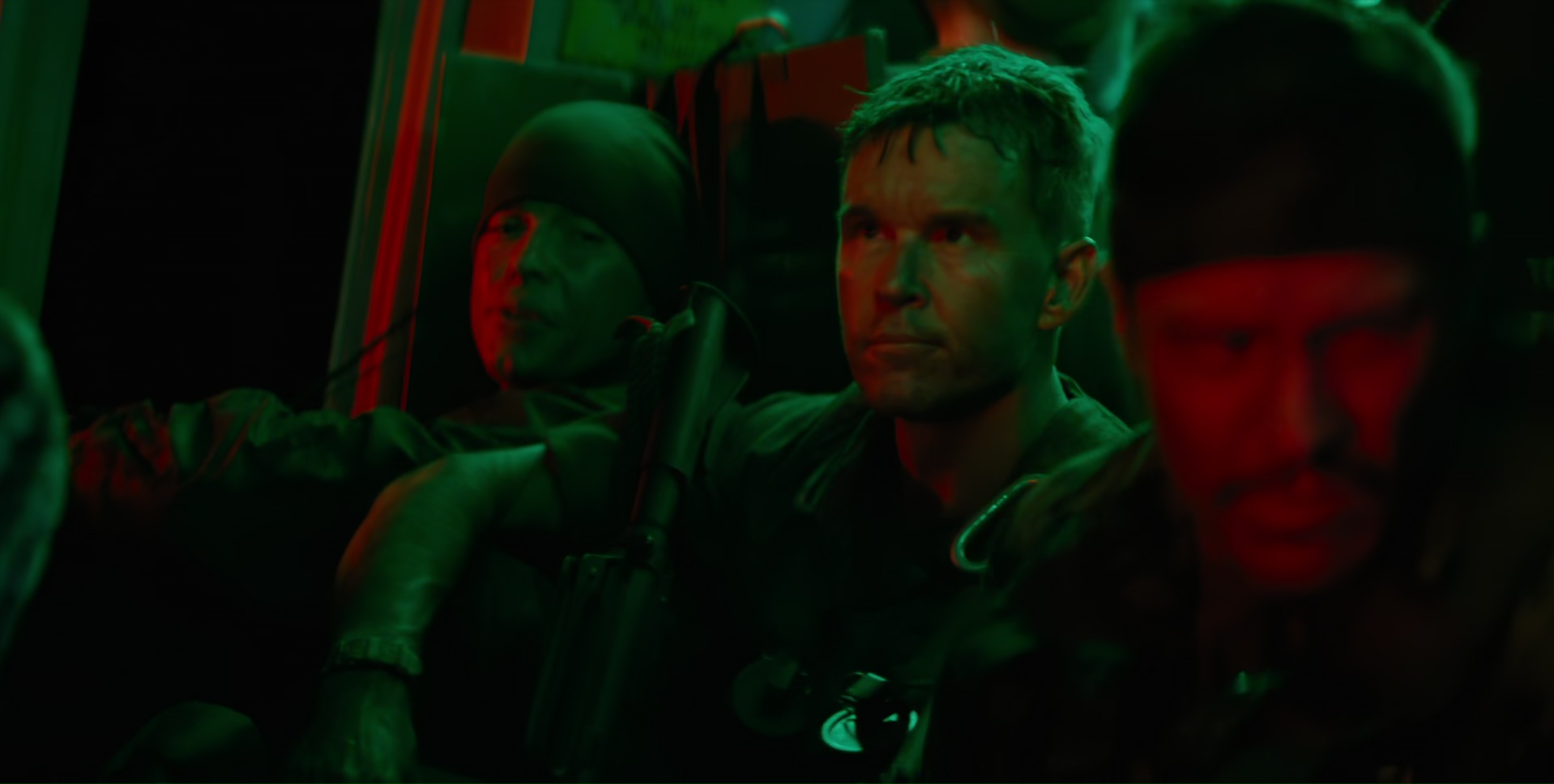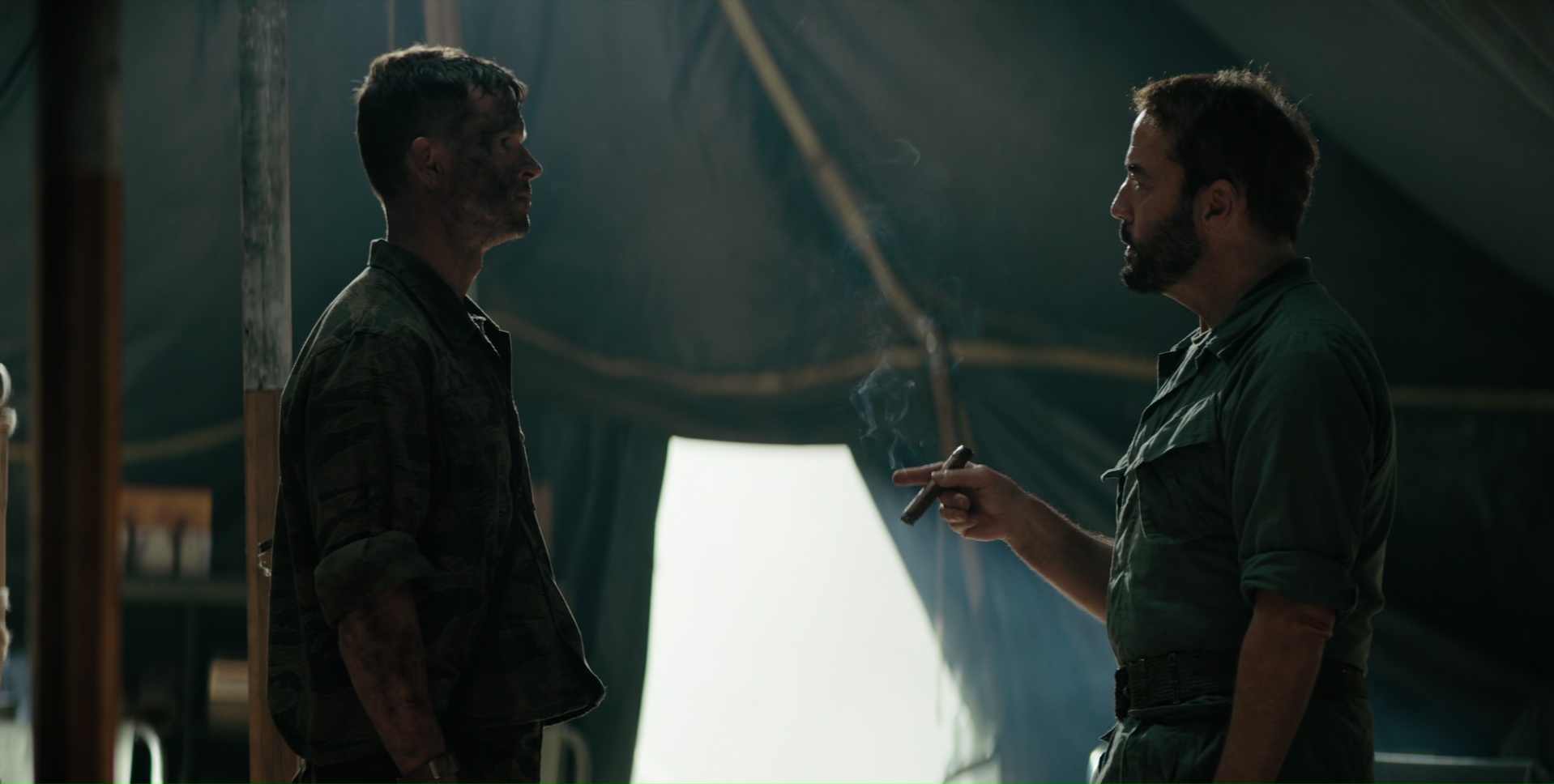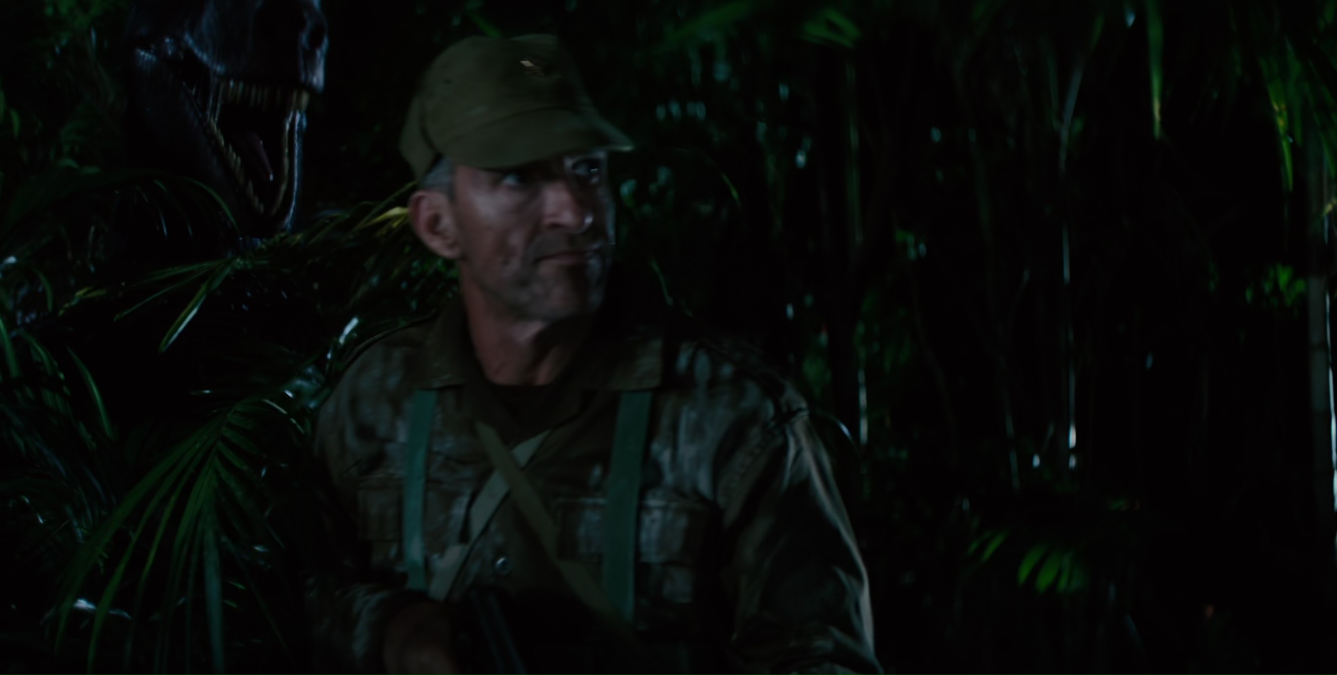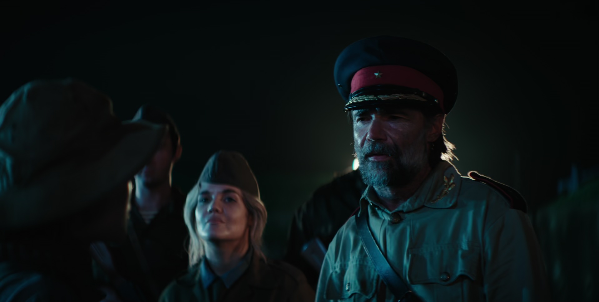 Mais pourtant, face à sa générosité et surtout, son honnêteté, ou dans ce cas spécifique, sans doute, l’honnêteté de la tête pensante du projet (bien qu’il adapte un roman), impossible de ne pas prendre du plaisir en regardant le fameux métrage. Nous sommes donc plongés en pleine guerre du Vietnam, à suivre un petit groupe de soldats qu’on envoie en pleine jungle pour une mission, simple. Dans les faits, à savoir, retrouver des soldats disparus. Evidemment, dès leur arrivée sur place, tout tourne mal, les militaires du coin ne sont pas la seule menace, des dinosaures voraces et qui n’hésitent pas, ici, à étriper leurs victimes, rodent et vont les prendre en chasse. Et autant dans son côté de grosse série B avec des dinosaures que celui du film de guerre au Vietnam, Primitive War fait le boulot, faisant les deux éléments bien comme il faut. La guerre est réaliste, les corps tombent, les soldats crient, la jungle est moite, dense, et la bande son se permet de nous sortir quelques titres rock de l’époque qui ne seront pas sans rappeler quelques grands films du genre. Quand au côté dinosaures, enfin un film qui n’oublie pas que les dinosaures, c’est censé être dangereux, attaquer, être sournois, et ne pas lâcher ses proies. Des éléments que la saga Jurassic semble d’ailleurs avoir oublié depuis bien longtemps, peut-être même le second opus original en réalité. Ici, tout le monde peut y passer, les blessures font mal, les corps saignent, sont démembrés, les tripes tombent. Les dinosaures redeviennent donc ces animaux dangereux, et pas des animaux mignons pour vendre des jouets (oui, je pense encore à Jurassic World Rebirth et son bébé dinosaure mimi). Même au niveau des personnages, on appréciera une certaine profondeur. On n’échappe pas à certains clichés, avec le grand méchant Russe dans la dernière partie, avec certains éléments, certains traumatismes. Mais quasiment chaque personnage a droit à un minimum de background et ça évite donc d’en faire de simples coquilles vides vouées à mourir.