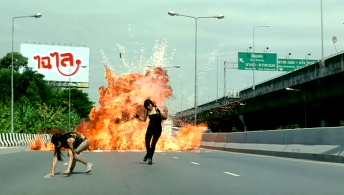 Poj Arnon devait se dire qu’il n’était plus à ça près, et que quitte à aller dans la girl’s power touch et à copier ce qui se fait ailleurs, autant y aller encore plus à fond. Alors pourquoi s’infliger un tel spectacle ? Serait-ce pour la débilité ambiante ? Pour cette scène de danse filmée n’importe comment, montée n’importe comment et qui abuse de gros plans sur les boobs et le cul de son actrice ? Ou serait-ce car avec ses 1h42 débordant à en vomir de tout ce qu’il était possible d’empiler dans le film, on a limite le contenu de 5 films de McG ? Peut-être au final pour les trois à la fois. Même si, au terme de la vision, on a l’impression d’avoir un peu perdu de notre intelligence. Et dans le fond, c’est dommage que l’ensemble du métrage baigne dans une certaine incompétence technique, et possède une écriture qui ne peut camoufler ses défauts sous le prétexte que c’est débile. Il est toujours possible de faire sérieusement et en s’appliquant quelque chose de débile, tout en étant drôle volontairement, et pas car ça va trop loin ou que c’est raté. Dans les faits, ça aurait pu vraiment être l’alternative Thaïlandaise à Charlie’s Angels, mais c’est souvent trop con, trop mal fichu, trop bancal pour être le cas. Bourré au whisky avec des potes bien macho par contre, ça pourrait faire un sacré nanar en soirée.
