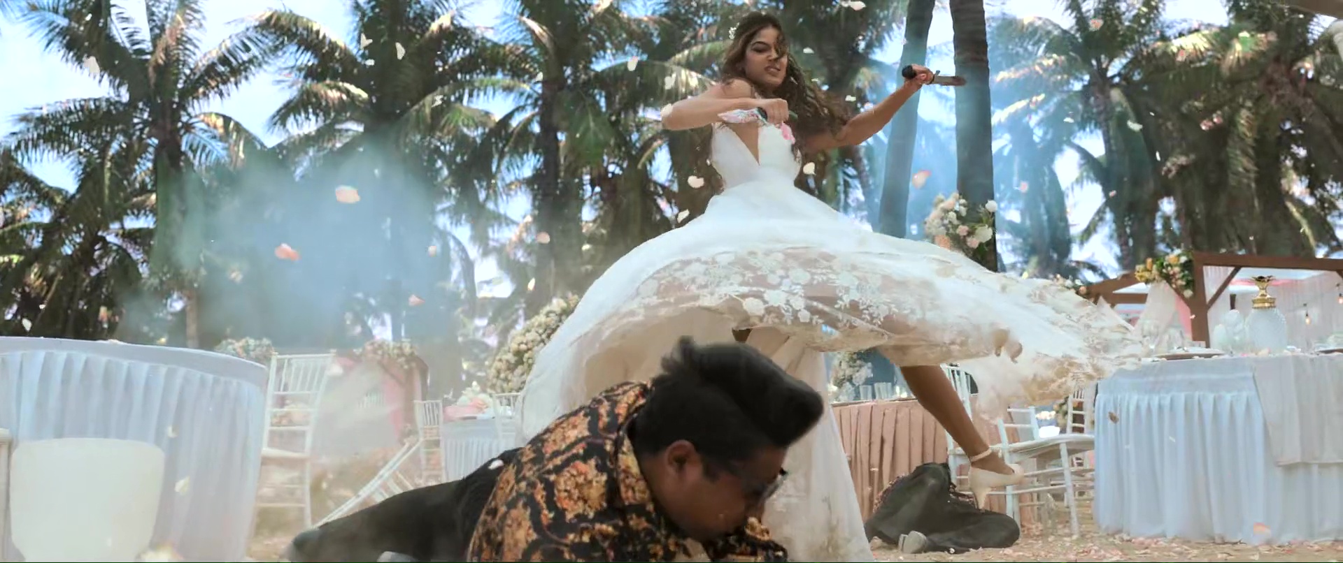 Pourquoi Ronnie a halluciné, preuve à l’appui, sa première scène d’action dans la rue s’il se fait vraiment attaquer une heure plus tard par des figurants portant les mêmes déguisements ? Pourquoi un plan si compliqué juste pour que le méchant kidnappe Alisha et ne l’épouse, un an après ? Pourquoi juste ne pas tuer Ronnie d’entrée de jeu et hop, on n’en parle plus ? Car oui, le plan, il est en vrai archi élaboré, et demande la collaboration de quasi tout le monde, de la police, de la famille… Bref, ça n’a jamais de sens. On me dira que l’on ne part pas dans Baaghi 4 pour réfléchir, oui, mais le film pousse tellement tout assez loin qu’on se pose malgré tout la question. Le seul élément un brin salvateur viendra tardivement, et ce sera l’ultra violence du film. Ronnie, dans sa quête de vengeance, transperce, démembre, décapite, toujours au rythme de la musique du film, c’est de mauvais goût, les CGI sont parfois dégueulasses, mais ça va tellement loin dans le délire habituel du surhomme Indien que ça en devient marrant. Mais 2h37 pour ça, c’est quand même beaucoup, et ça me conforte dans l’idée qu’il ne faut pas que je place mes yeux sur les deux premiers opus.