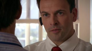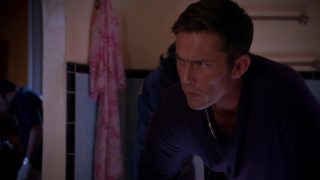 Mais évidemment, en plus de devoir gérer l’après saison 4, cette nouvelle saison 5 doit comme toujours faire avancer les choses de manière plus globale, introduire un nouveau méchant, rajouter des intrigues. Et c’est là que cette cinquième saison joue un yoyo assez fascinant entre ce qui fonctionne, et ce qui ne fonctionne pas. Quinn par exemple, il prend clairement le rôle de Doakes en doutant de Dexter et en décidant d’enquêter, allant même jusqu’à embaucher un détective, avec ce bon vieux Peter Weller (Robocop) dans le rôle. Et ça, ça marche, Quinn a enfin quelque chose à faire à l’écran, un but, bref, il existe. Peter Weller quant à lui incarne un enfoiré de première, ancien flic licencié prêt à tous les coups bas pour avoir ce qu’il veut. Ce sera donc, dans le fond, la première fois que quelqu’un aura des preuves, avec photos et bandes audios, de ce que Dexter fait à côté de son boulot, même si pendant un court instant seulement. C’est donc aussi à partir de là, à mon sens, que Quinn sait très bien qui est Dexter, mais décide de garder le secret. Un élément qui ne sera pourtant jamais abordé, mais qui semble à l’écran logique. Ou alors il est plus con qu’on ne le croit. A côté de ça donc, du deuil, de Dexter, de l’ambiance, il y a Jordan Chase, le grand méchant de la saison, joué par Jonny Lee Miller (Trainspotting), genre de coach mental manipulant son entourage, et ayant sa petite bande de potes, qu’il manipule aussi. L’idée n’est pas inintéressante, surtout que oui, les acteurs sont en soit de bons acteurs, mais il y a un léger souci dans l’écriture. Jordan Chase par exemple, qui apparaît parfois comme dangereux et manipulateur (le moment où il fait monter Dexter sur scène et le force à parler de la fin de la saison précédente), et bien le scénario parfois ne sait pas trop quoi faire de lui, et n’en fait donc souvent rien, juste un méchant stéréotypé qui en fait des caisses, notamment dans la dernière partie de la saison.