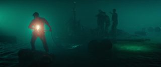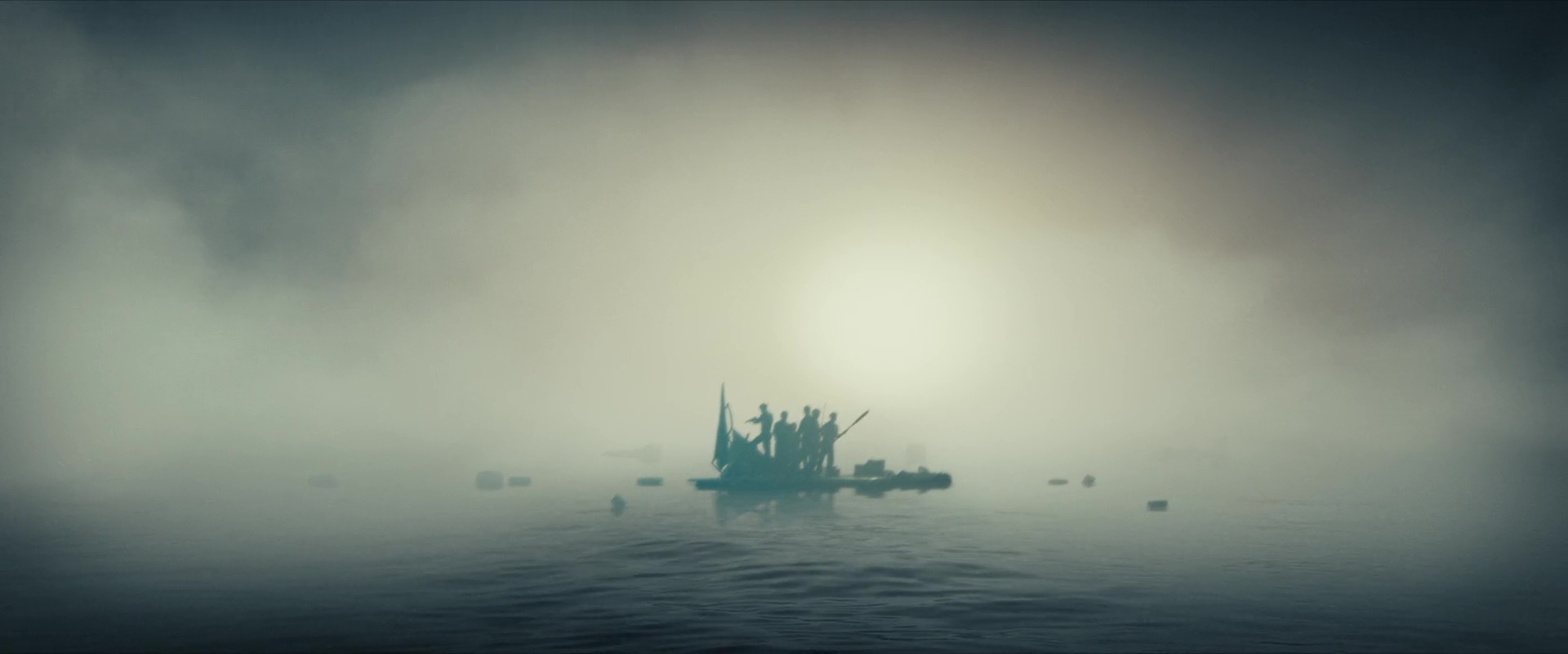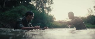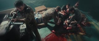 Un choix presque à l’ancienne en réalité, plus proche des séries B des années 80 dans son approche, avec une première partie faisant la part belle aux personnages (qui restent clichés, mais on a un minimum de fond), avant que l’on n’envoie l’équipe en mer, que le drame n’arrive, et que la survie domine. Une orientation éloignée de l’approche plus récente d’un The Shallows (Instinct de Survie) par exemple, qui démarrait plus rapidement, mais hachait ensuite son rythme pour nous en dévoiler plus sur son personnage au fur et à mesure. La première partie est donc lente, mais plaisante, nous présentant en particulier nos deux personnages principaux, soldats, Leo (Mark Coles Smith) et Will (Joel Nankervis). Des acteurs pas forcément connus, le premier étant apparu récemment dans We Bury the Dead aux côtés de Daisy Ridley, tandis que le second débute sa carrière et tient là son premier rôle au cinéma. Bref, ça fait le job. Et une fois que ça débute vraiment ? Nous sommes là face à un pur film du réalisateur, avec ces quelques élans sanguinolents évitant le numérique et qui font donc plaisir, un rythme plus ou moins soutenu, mais aussi un côté hautement prévisible (le héros avec son trauma familial en lien avec les requins, le gars qui panique pour un rien, le salaud prêt à tout pour survivre), quelques moments un peu trop gros, et quelques moments qui peuvent faire sourire (l’accident de grenade). En bref donc, une série B tout ce qu’il y a de plus classique, mais qui ne cherche jamais à être plus que ça, donc on ne lui en voudra pas au final. Heureusement oui, la majeure partie du temps, ça reste une série B bien rodée et plutôt solide, techniquement propre, et avec quelques idées ci et là. L’idée de jouer sur un lieu unique (le radeau) n’est pas nouvelle, mais le réalisateur sait varier son ambiance assez souvent pour se renouveler, jouant sur l’obscurité, la brume, les couleurs, et donc l’absence de la menace à l’écran assez souvent.