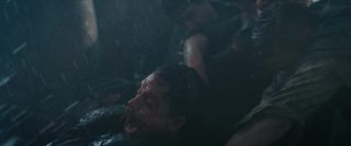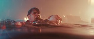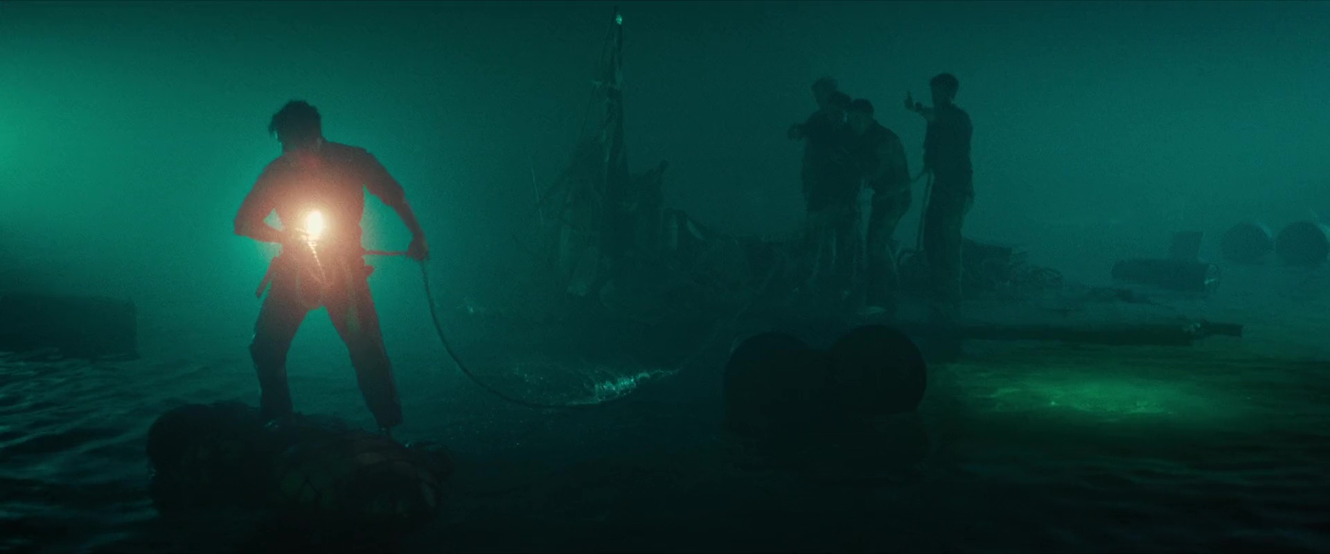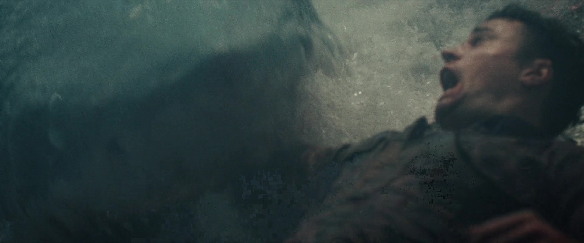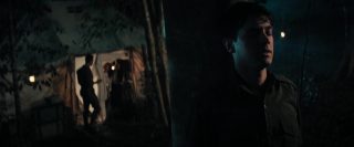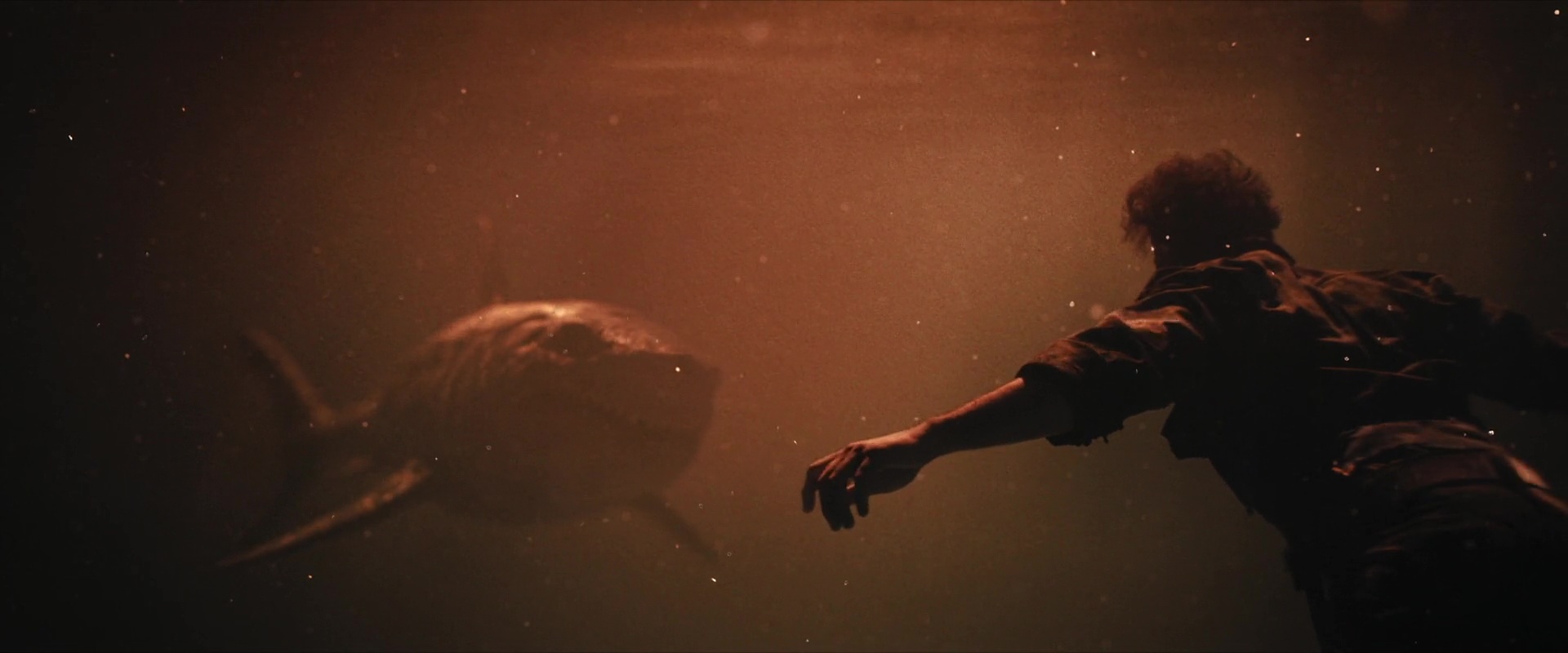 En amateur de séries B à l’ancienne, le réalisateur livre d’ailleurs des cadres qui rappellent bel et bien le cinéma de cette époque, avec des plans souvent serrés, donnant un aspect de huis clos en plein air. Alors oui par contre, on pourra pester sur les quelques facilités, comme ces visions pour notre héros, forcément représentées à l’écran via des filtres de couleurs et des apparitions, ne laissant jamais le doute face à ce que l’on a sous les yeux, au cas où le public serait trop bête pour comprendre. Là où l’on sera aussi moins clément au final, ce sera dans la dramaturgie du film, celui-ci ayant souvent recours à des petites facilités pour faire avancer son récit. En résulte par exemple un accident de grenade qui m’aura plus fait rire que terrifié (était-ce le but ? Je ne pense pas vu que l’ensemble du film est sérieux), ou encore l’arrivée d’un soldat d’un camp ennemi, comme par hasard, sur un autre radeau, arrivant au même endroit, poussé par les vagues. Sans oublier le requin, plutôt convaincant d’ailleurs, à quelques plans près qui font un peu plus faux, mais qui est parfois d’une grande vivacité quand le scénario le veut bien, et à d’autres moments, semble trainer la nageoire pour laisser une chance aux personnages. Des petits défauts, qui si l’on aime le genre, n’entachent pas la vision du film, mais on se dit que c’est tout de même dommage.