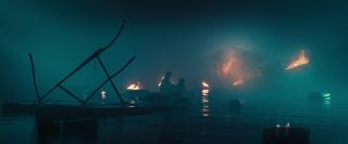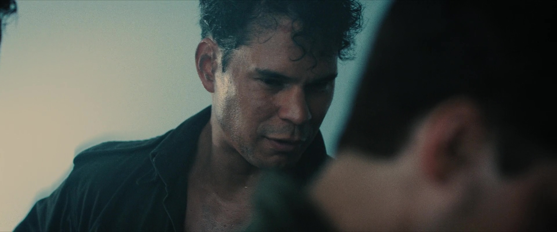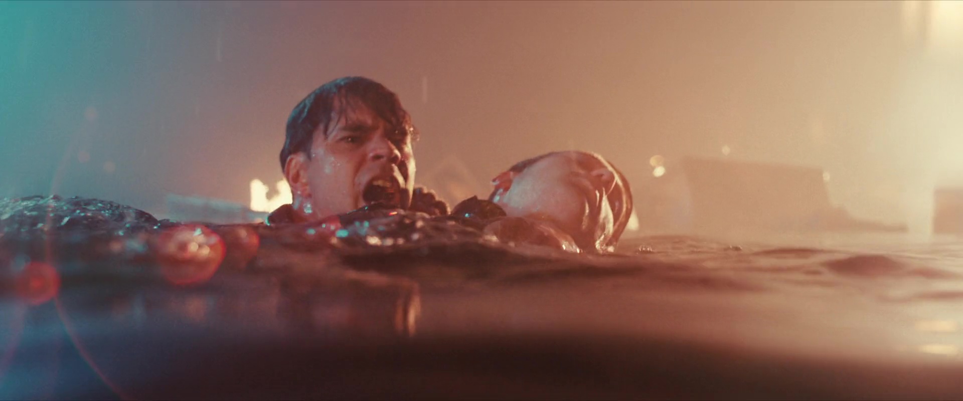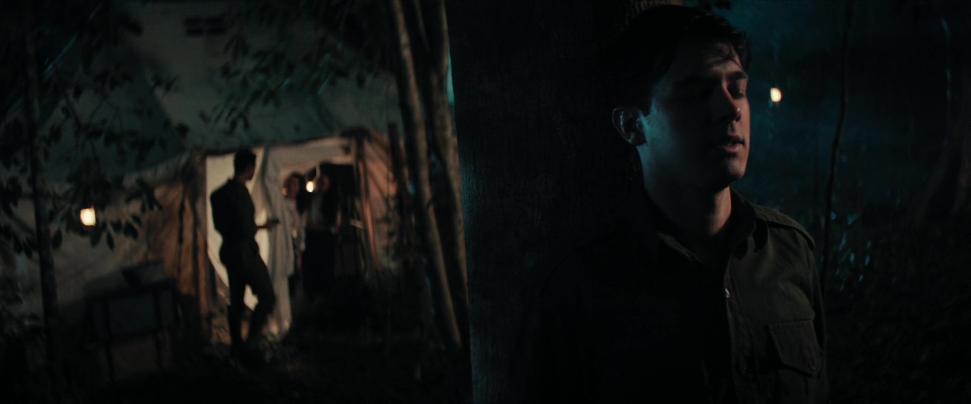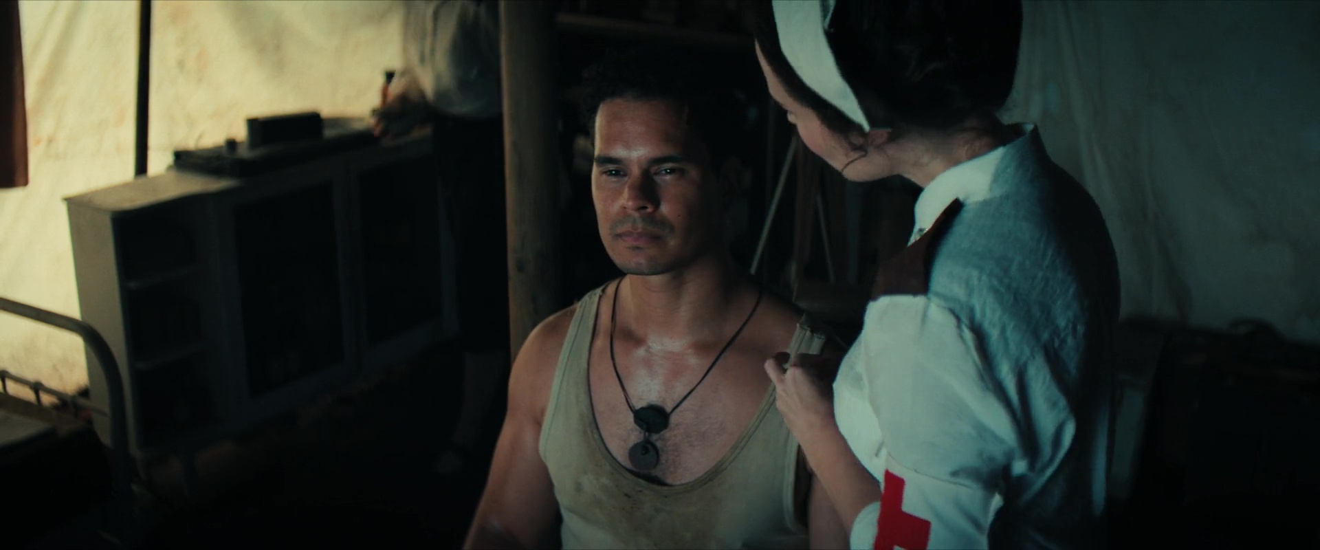 En amateur de séries B à l’ancienne, le réalisateur livre d’ailleurs des cadres qui rappellent bel et bien le cinéma de cette époque, avec des plans souvent serrés, donnant un aspect de huis clos en plein air. Alors oui par contre, on pourra pester sur les quelques facilités, comme ces visions pour notre héros, forcément représentées à l’écran via des filtres de couleurs et des apparitions, ne laissant jamais le doute face à ce que l’on a sous les yeux, au cas où le public serait trop bête pour comprendre. Là où l’on sera aussi moins clément au final, ce sera dans la dramaturgie du film, celui-ci ayant souvent recours à des petites facilités pour faire avancer son récit. En résulte par exemple un accident de grenade qui m’aura plus fait rire que terrifié (était-ce le but ? Je ne pense pas vu que l’ensemble du film est sérieux), ou encore l’arrivée d’un soldat d’un camp ennemi, comme par hasard, sur un autre radeau, arrivant au même endroit, poussé par les vagues. Sans oublier le requin, plutôt convaincant d’ailleurs, à quelques plans près qui font un peu plus faux, mais qui est parfois d’une grande vivacité quand le scénario le veut bien, et à d’autres moments, semble trainer la nageoire pour laisser une chance aux personnages. Des petits défauts, qui si l’on aime le genre, n’entachent pas la vision du film, mais on se dit que c’est tout de même dommage.