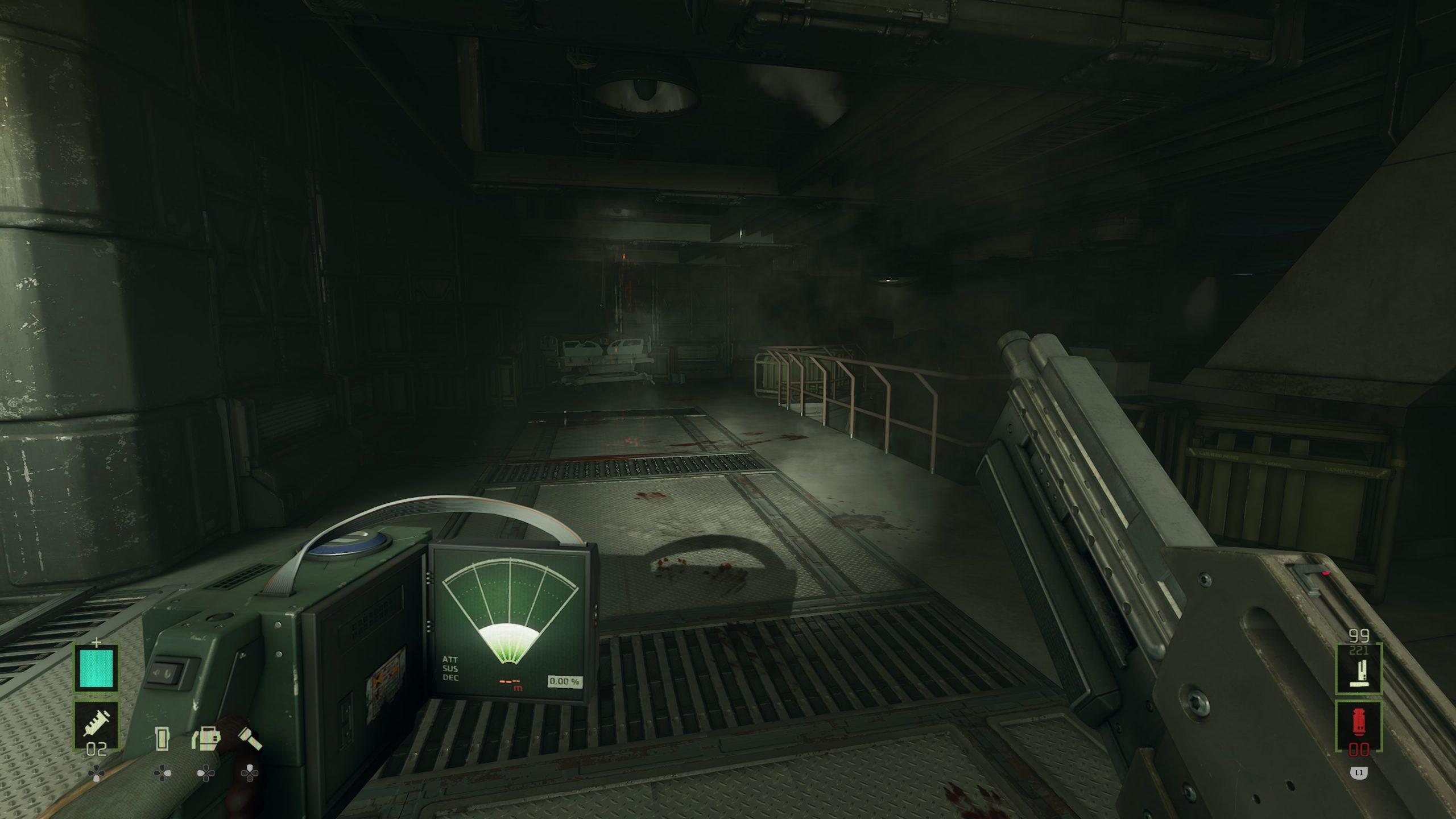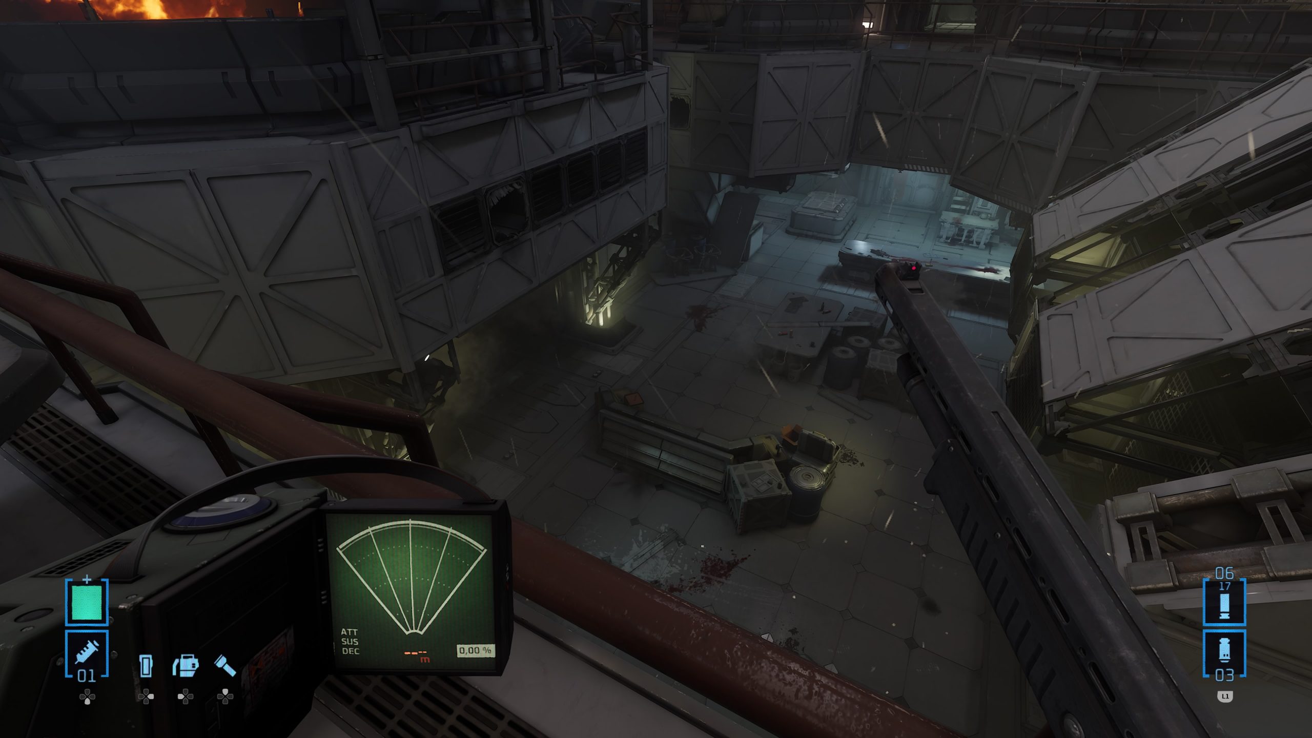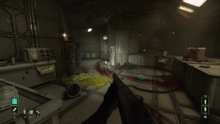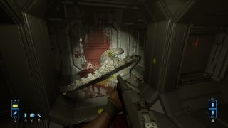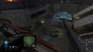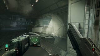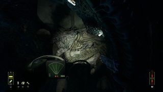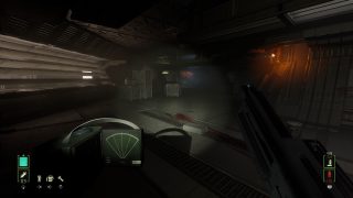 Ceci dit, les développeurs ont néanmoins bien bossés, puisque pour le reste, en effet, ça a été modifié. Notre soldat recharge son arme dans une animation réaliste alors qu’en VR, le joueur devait faire les mouvements, on se déplace normalement avec le stick et on regarde autour de nous avec ce même stick là où forcément, en VR, c’était le joueur, sa tête et son vrai champ de vision qui étaient en jeu. Du travail en plus a été effectué sur le visuel du jeu, mais aussi sur son framerate, totalement stable, et plus haut que la version VR d’ailleurs. Mais arrêtons de comparer, et que vaut le jeu en tant que tel ? Et bien c’est pas mal du tout. Ces principaux gros défauts viennent bel et bien de sa nature originale de jeu VR, mais il a assez de qualité pour plaire au fan. Déjà car il retranscrit très bien l’ambiance du film de Cameron. Une planète inhospitalière, le vent et le froid dehors, le complexe de la compagnie, ses couloirs mal éclairés, et bien entendu, tous les accessoires qui vont avec, comme le fameux fusil à impulsion et son chargeur de 99 balles (qui descend parfois bien vite), et bien entendu le fameux détecteur de mouvement qui sera parfois votre meilleur ami. Avec la musique du jeu puisqu’elle s’emballe dès qu’un ennemi est proche, et s’arrête dès que le dernier a été plombé. Même dans sa structure, le jeu respecte l’univers et le film de Cameron, puisque l’ensemble joue beaucoup en premier lieu sur l’attente, l’ambiance, avant de se faire plus musclé par la suite, de nous emmener dans un nid Alien et j’en passe. On trouve même le découpeur plasma pour débloquer certaines portes.