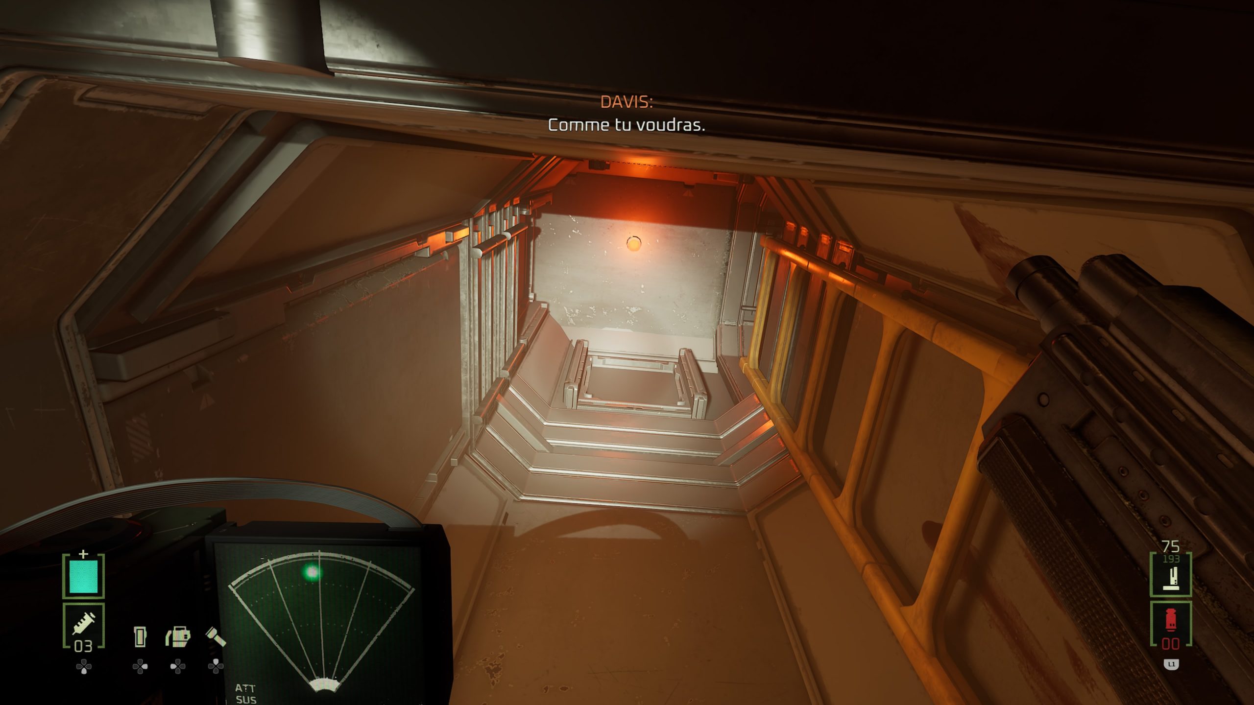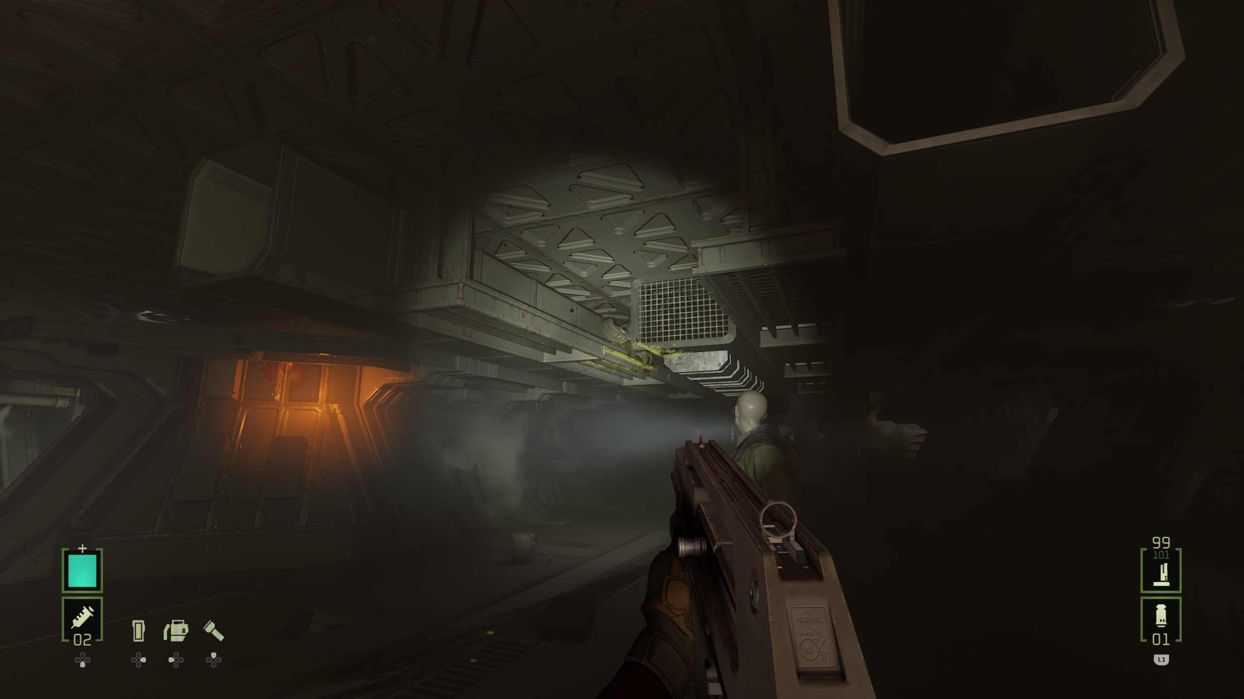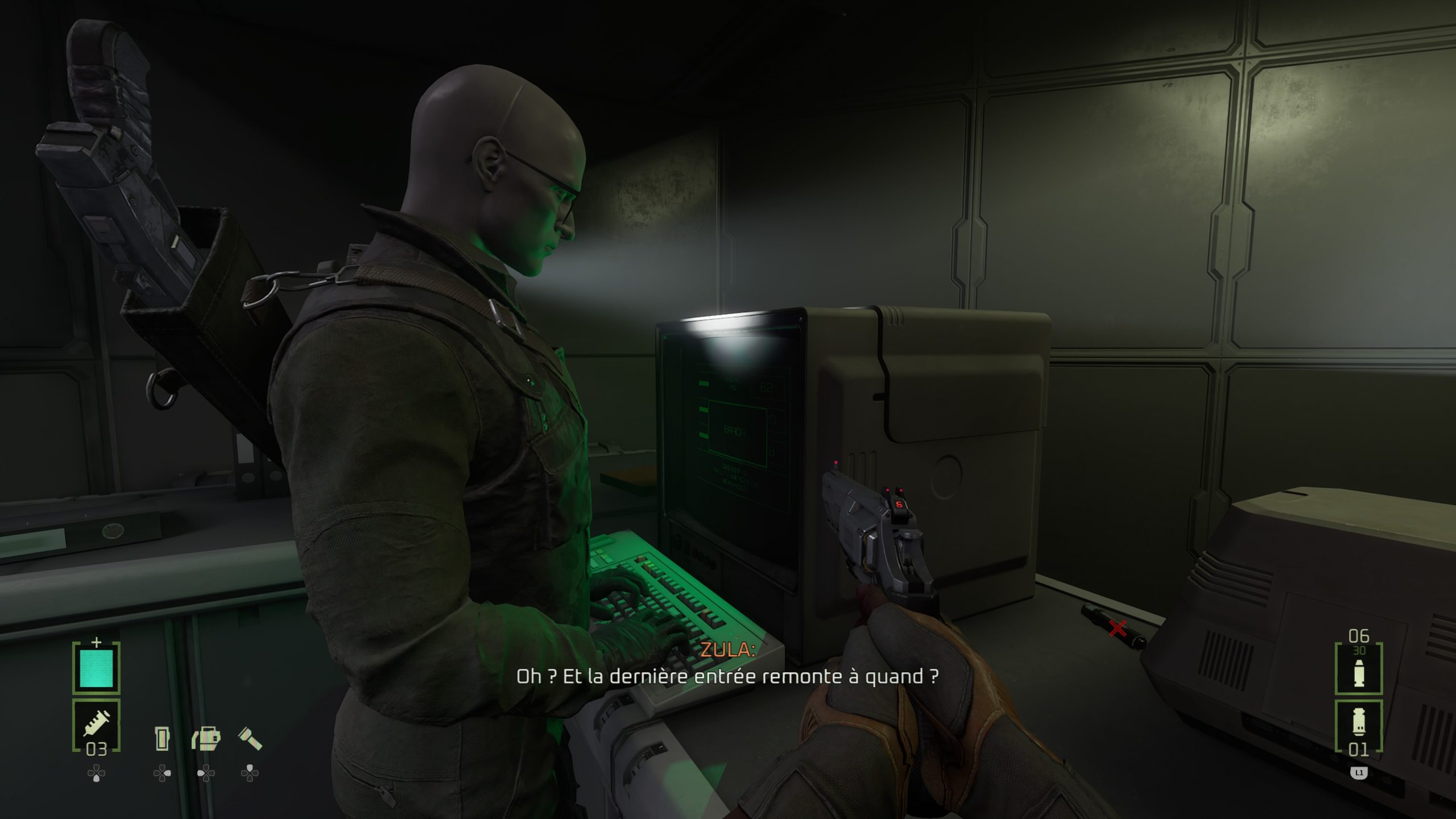 En réalité, tous les défauts, que ce soit avec ces QTE pour l’interaction avec certains objets, ou son manque de surprise générale surtout lorsque l’on connait la saga depuis ses débuts, je le pardonne. Ce qui est moins pardonnable, ce sera les quelques bugs, et surtout les bugs bloquants. Lors d’une mission, le jeu envoie le joueur à deux endroits pour récupérer deux objets vitaux pour avancer. Sauf qu’à mon premier essai, la carte m’indique n’importe quoi. Pas grave, je ferme le jeu, je relance la partie, et là, l’objet n’apparaît tout simplement pas dans l’entrepôt où il devait être. Heureusement, le jeu ayant la bonne idée de nous permettre de charger les cinq dernières sauvegardes, je peux revenir en arrière, et tenter de débloquer la situation, faisant enfin apparaître les deux objets nécessaires au bon endroit. Un comble, ce bug existant déjà depuis la version VR, et pouvant potentiellement bloquer le joueur, surtout qu’il arrive à un endroit assez avancé de l’histoire, juste avant de faire la dernière zone du jeu. Ça, je le pardonne beaucoup moins, puisque nous sommes à la fois face à un bug sur l’apparition d’un objet, mais aussi parfois sur un bug d’interface, la carte du jeu étant parfois traitre et mal fichue. Heureusement au final, avec un peu de patience, on peut se débloquer, et la map n’est pas non plus énorme. Et donc, je préférerais retenir le positif de ce Rogue Incursion, malgré son twist final, en espérant que la suite débarque bien en 2026, sinon je risque d’oublier tout ça. Mais pour un jeu à bas prix, au départ en VR, le résultat est plus qu’honorable et m’aura fait oublier les déconvenues de la saga depuis le génial Alien Isolation.