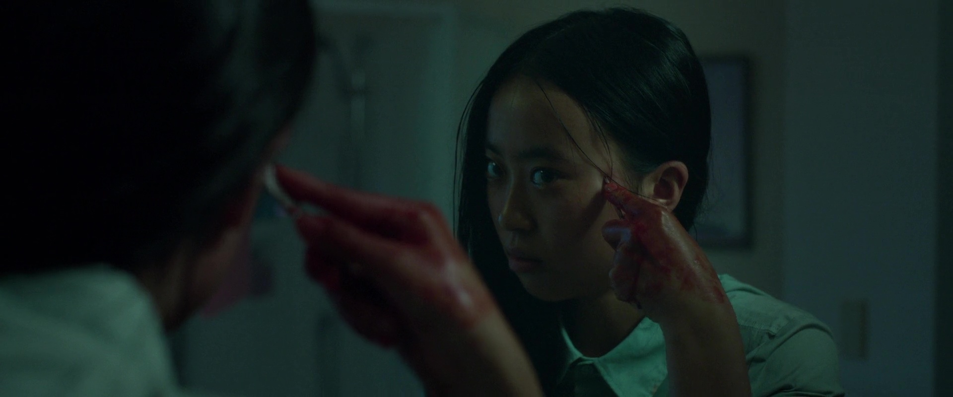 Dans Grafted donc, nous suivons Wei, une étudiante Chinoise en Nouvelle Zélande avec une marque de naissance sur le visage, et qui essaye de continuer les travaux de son père qui a tenté lui aussi de corriger ce défaut physique, quitte à en perdre au passage la vie. Et Grafted, sur bien des points, c’est une œuvre passionnante, autant dans ce qu’elle raconte que dans sa façon de faire et de mélanger différents genres, ce qui est à la fois un pari risqué pour la réalisatrice donc, qui signe son premier long métrage après quelques courts remarqués et appréciés, mais aussi une belle lettre d’intention et d’amour envers les différents aspects du genre horrifique. Le body horror est bien présent oui, mais dans Grafted, on trouve aussi un peu de slasher, les expériences de Wei lorgnent parfois vers le récit à la Re-Animator même si elle pratique les expériences sur elle-même, et on pourrait même voir dans sa toute première partie une envie de montrer un récit classique de teen movie, qui en soit, fonctionne lui aussi plutôt bien. Une œuvre donc variée et gourmande, mais qui parvient à bien marier tous ces aspects, ce qui tient déjà presque du miracle. Car Wei ne va pas seulement vouloir corriger sa tache de naissance, non, ça ira bien plus loin, à coup de vol de visage, et donc d’identité, un peu comme un Volte/face, les colombes en moins, mais les coups de scalpels en plus. Comme dans le métrage d’action d’ailleurs, il faudra accepter le côté assez invraisemblable du procédé pour se raccrocher au sérieux de l’entreprise, bien que non dénué d’humour, mais à ce que le procédé raconte également. Car toute l’ironie de la situation, c’est qu’en changeant de visage, et donc en devenant des personnages bien plus populaires et en vue au sein de son école, Wei gagne des regards, une certaine attention, ce qui finalement, la fait rentrer dans un cercle différent, tout ça pour en quelque sorte renier sa différence, renier ce qu’elle est, pour ressembler juste à toutes les autres.