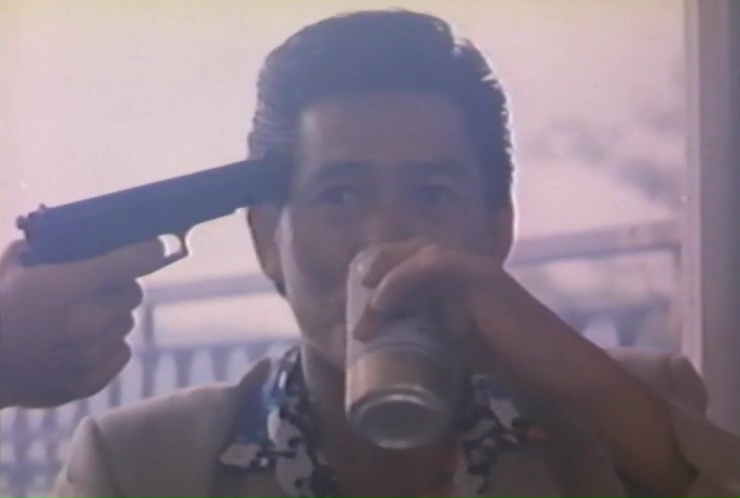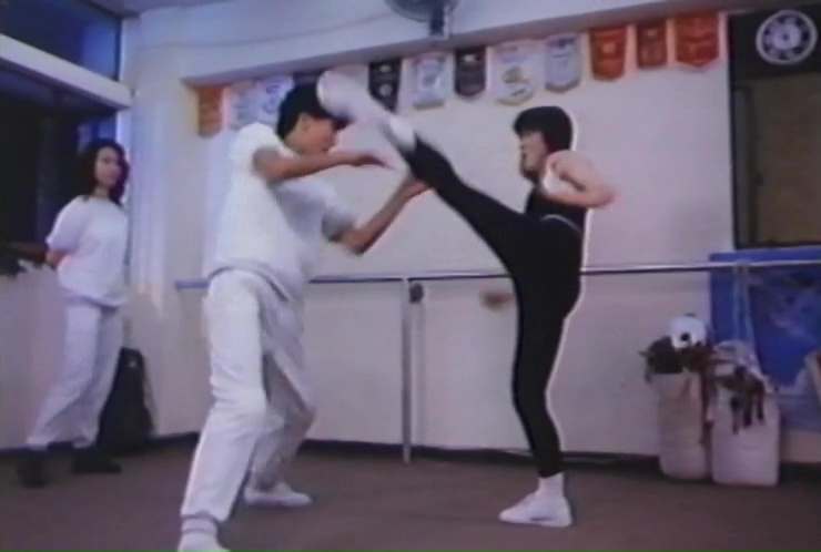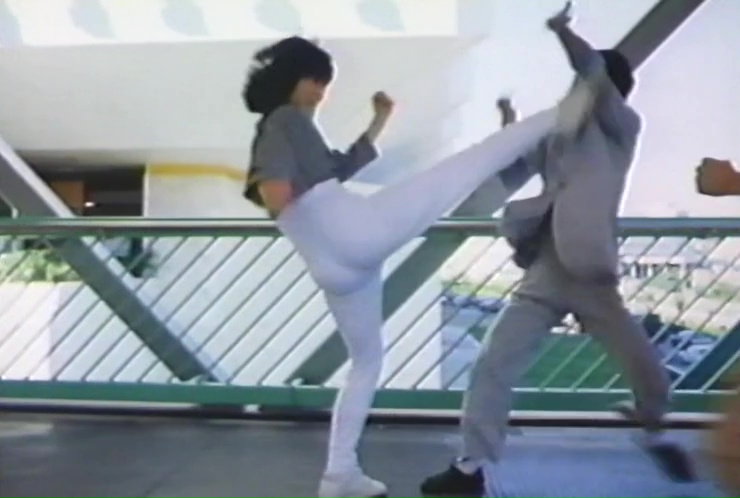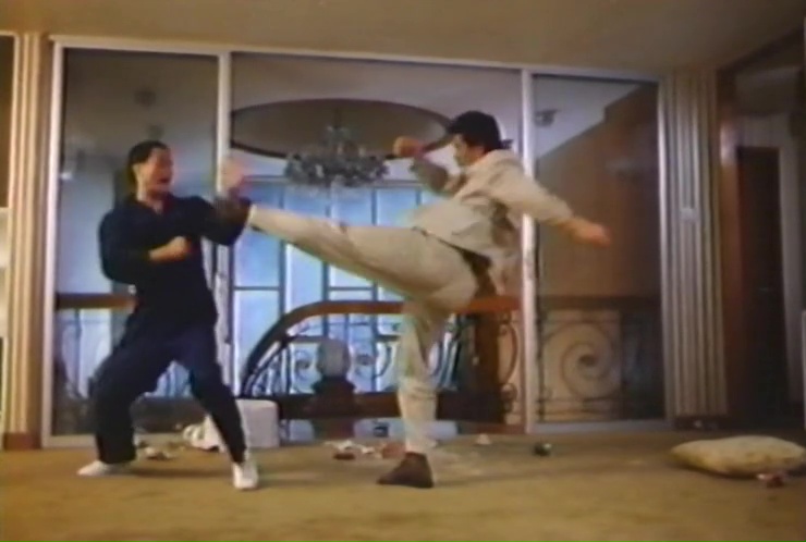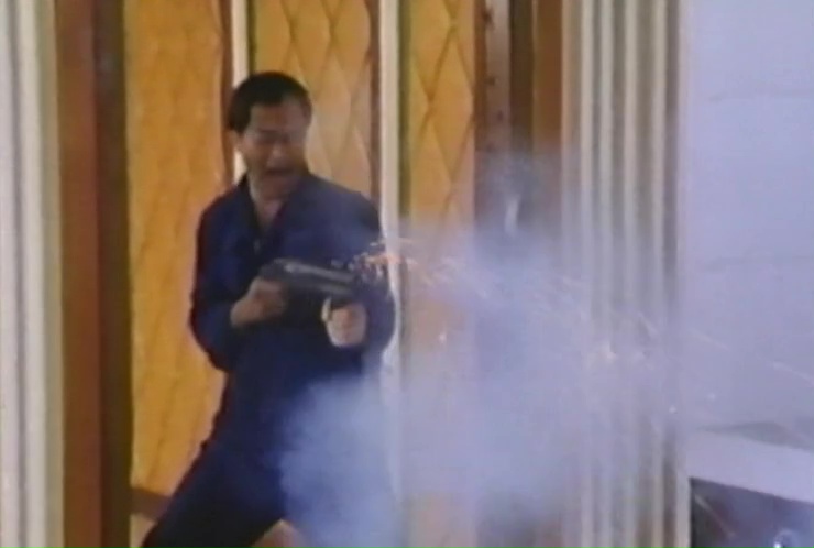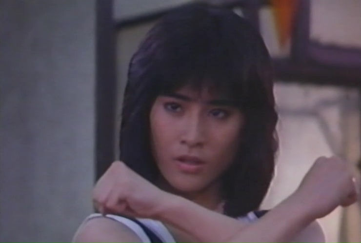 Niveau scénario, forcément, c’est bancal et un peu le bordel, avec pleins de personnages aux destins divers qui se croisent, des fois, puis se recroisent, sans que le tout n’ai forcément un lien fort ou clairement identifiable le plus souvent. Mais qu’à cela ne tienne, puisque le film débute par une fusillade qui s’achève avec une grosse mitrailleuse, avant d’enchaîner cash sur un entrainement au dojo avec Oshima, le tout en Japonais, car mine de rien, à force, on oublierait presque qu’elle est Japonaise. Puis à peine quelques secondes après, voilà que la copine de Dick Wei se fait kidnapper par méchant Phillip Ko Fei, et à peine le temps de dire ouf, Oshima arrive dans un restaurant le temps de mettre KO quelques figurants. Temps de film, 18 minutes, et hop, nos trois personnages principaux sont établis, on remarque de suite qui est méchant (vu qu’ils tirent tous la tronche), qui est gentil, et on a déjà eu un bon quota d’action. Plus qu’à rajouter par-dessus tout ça donc un trafic de drogue car il ne faut pas oublier dans quel genre de film nous sommes, et l’instant d’après, hop la police débarque, poursuite et cascades, go ! Ça a beau être un peu fauché, pas toujours très bien filmé, le film sait quoi faire pour retenir notre attention. Et si les combats en eux-mêmes sont dynamiques et sympathiques, on est malgré tout très loin des meilleurs du genre, surtout que la majeure partie du temps, les échanges restent plutôt courts. Le film le compense donc en cascades et en chutes, dont certaines nous feront dire un petit « ouuuuh ça a dû faire mal ».