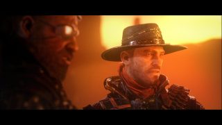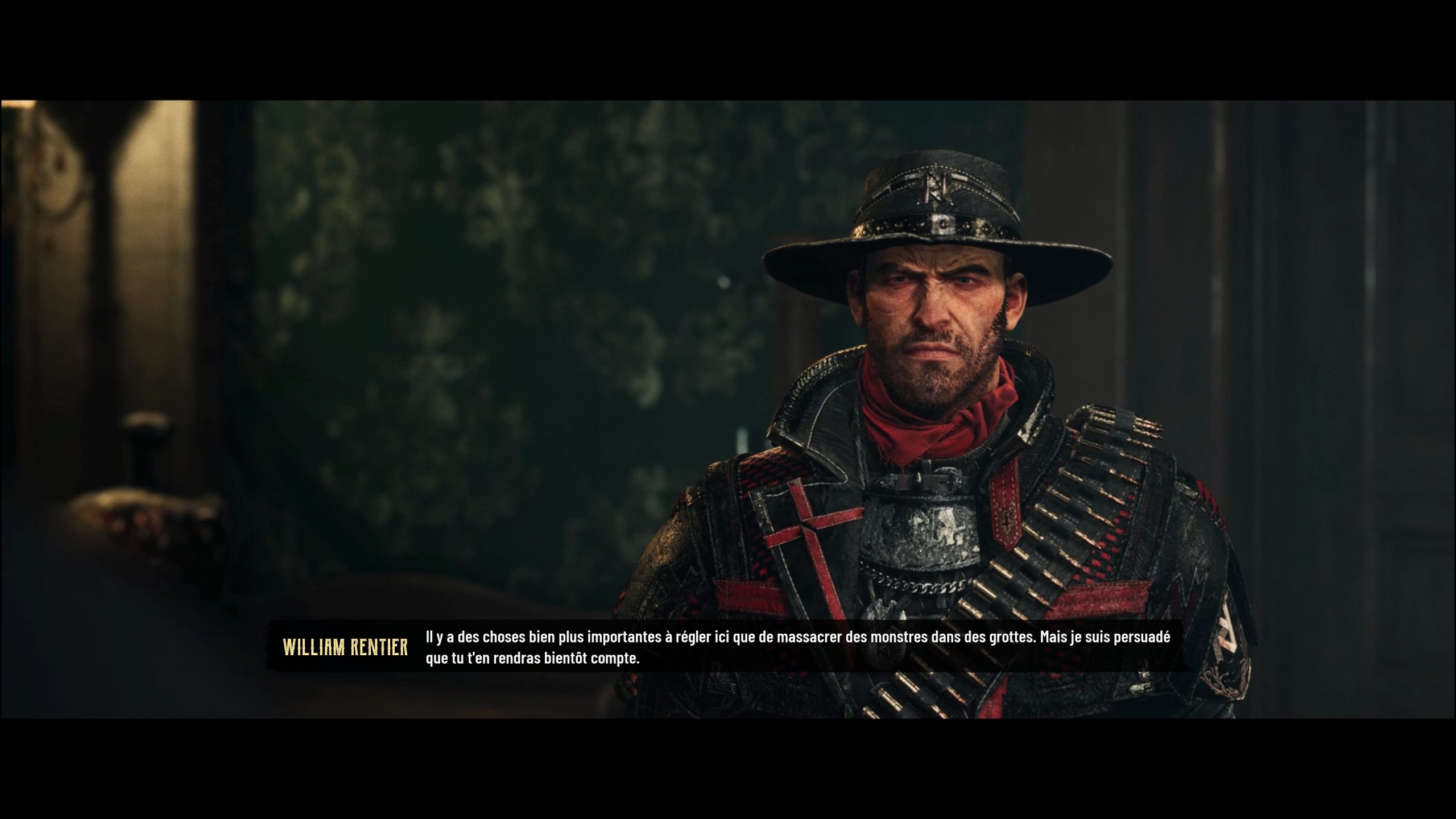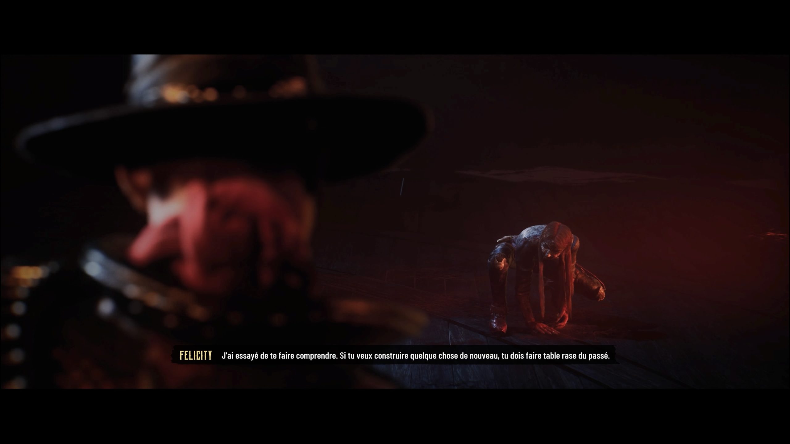 Il vaut mieux donc avoir de sérieux réflexes, et vite prendre justement le reflexe de se débarrasser des petits ennemis pour avoir assez d’énergie pour lancer une grosse attaque d’électricité sur un gros ennemi. Ou alors, encore une fois, c’est juste moi qui suis totalement nul à ce gameplay… Néanmoins, nul ou pas, j’ai apprécié la proposition et le gameplay qui nous force à être réactif en permanence plutôt qu’à bourriner et instaurer notre façon de jouer aux ennemis. Niveau gameplay donc, c’est du tout bon, ça fonctionne sans rien renouveler, ça fait le boulot, et pour une aventure durant en moyenne 10 ou 11 heures, c’est parfait. Un peu plus si vous tenez à découvrir tous les coffres (les niveaux étaient assez restreints, on en trouve beaucoup sans faire exprès). Car évidemment, comme souvent dans ce genre de jeu, il va falloir récupérer de l’argent, afin d’augmenter les attributs de nos armes, en plus d’augmenter de niveau pour obtenir des points de compétences et obtenir de belles nouvelles capacités. Un petit aspect RPG pas bien envahissant et qui fonctionne lui aussi plutôt bien. Et le reste alors ? Evil West en tout cas, c’est certain, ne brille pas par son intrigue ou ses personnages. C’est de la pure série B, volontaire et assumée, avec tout ce que l’on peut attendre d’un tel programme. Des héros bad-ass, de la répartie, des méchants qu’on explose avec une petite punchline, un poil de vulgarité, et ça fait le boulot pour suivre les aventures de Jesse, mais donc aussi d’Edgar, et de quelques autres personnages secondaires tout aussi clichés, comme William, le père de Jesse et directeur de l’institut, très rapidement attaqué par les vampires, Harrow qui fait partie du gouvernement, ou Emilia, chef d’une petite cellule tranquille qui nous viendra souvent en aide dans la ville de Calico, où l’on se rendra assez souvent entre plusieurs missions. L’intrigue, elle est simple et tout aussi clichée, puisqu’en traquant dans la mission d’introduction un puissant vampire, D’Abano, nous déclenchons sans trop le vouloir une guerre, puisque la fille du vampire, Felicity, tient à venger son père et à éradiquer l’espèce humaine.