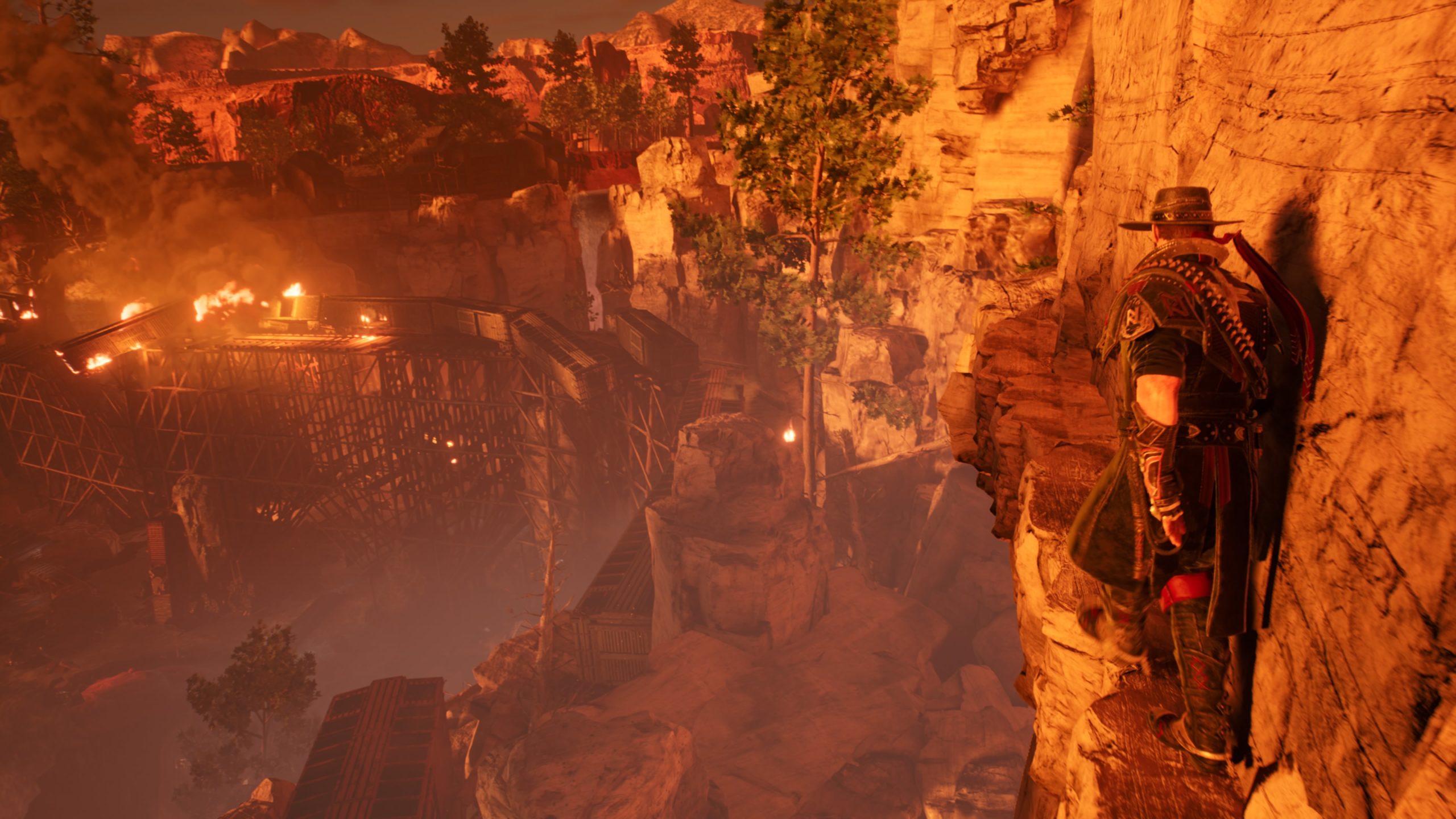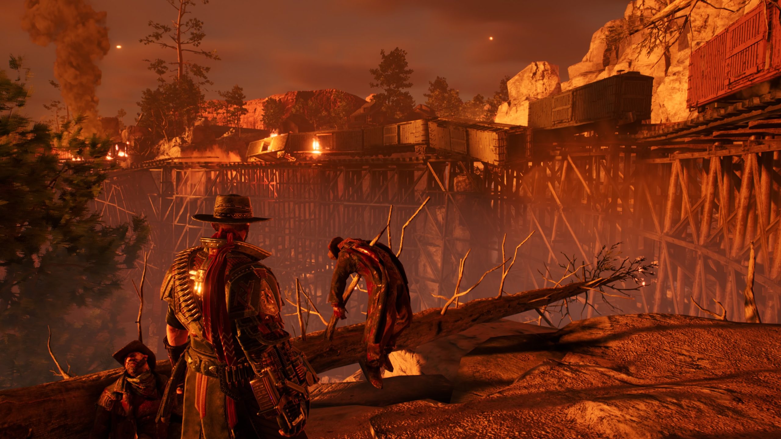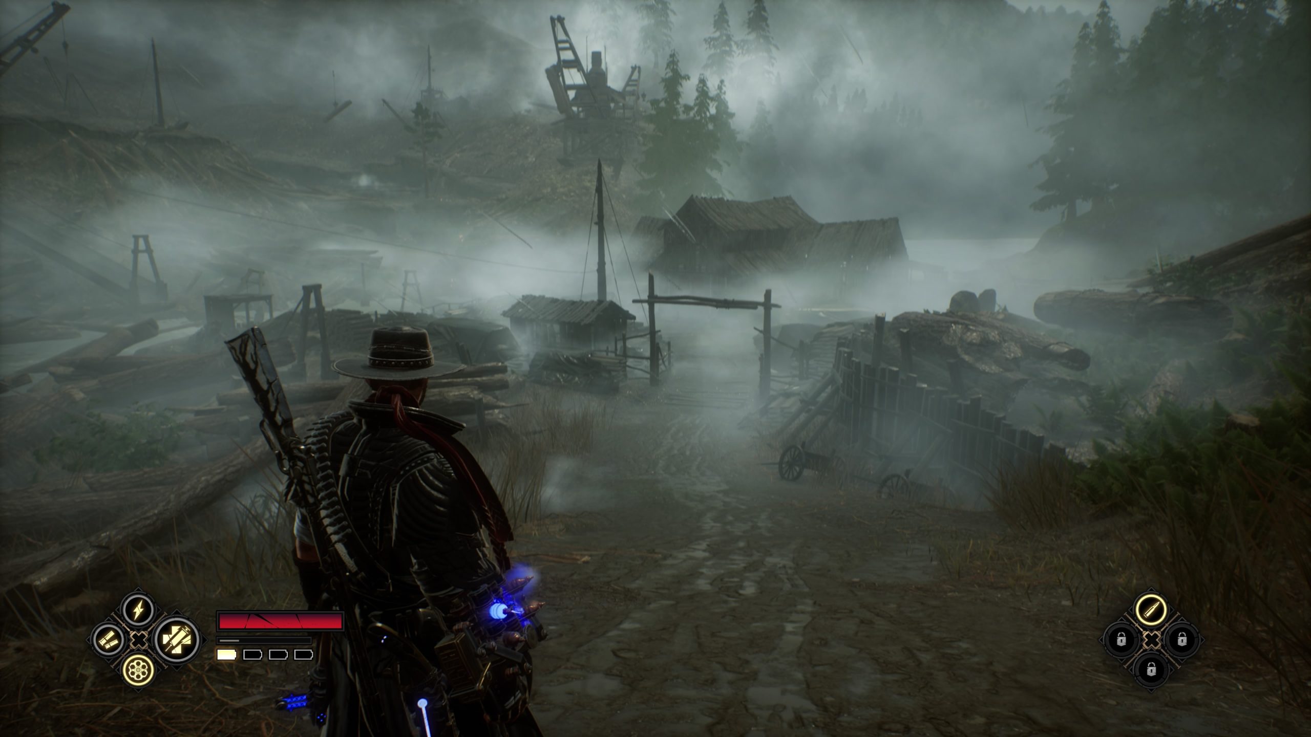 L’on pourrait achever de parler du jeu en parlant du level design et de la variété des niveaux. En soit, les niveaux ne sont pas bien variés, entre des déserts et les canyons environnants, des manoirs, des forêts brumeuses et hantées. Il faut vraiment attendre les derniers niveaux pour avoir une pure ambiance western avec des petites villes, de jour. Car avant, même lorsque l’on explore une petite montagne ou bien une usine, ça ne change pas énormément de ce que l’on avait avant. Le fait que chaque niveau, même en extérieur, soit en réalité un long couloir avec peu d’embranchements vient probablement augmenter ce côté assez répétitif dans les niveaux visités. Je pourrais aussi parler des rares bugs du jeu, car oui, il y en a, mais ils restent rares, donc on ne lui en tiendra pas vraiment rigueur. Mais néanmoins, on passe un très bon moment sur Evil West. Pas jusqu’à lancer un new game plus dans l’immédiat (le jeu est entièrement jouable en coopération par contre), mais assez pour qu’on le quitte sur une note positive, un petit jeu plus que sympathique, encore plus car il n’essaye pas d’être ce qu’il n’est pas. Il n’est qu’un petit jeu dans une ambiance de série B voire Z, jamais fin, jamais subtil, jamais intellectuel, qui demande surtout quelques bons réflexes afin de démembrer tous nos ennemis, et comme on dit souvent, parfois, la vie est faite de petits plaisirs simples. Des plaisirs comme d’électrocuter à mort des zombies, d’exploser des ennemis à la hache, ou de faire exploser le haut de la tête d’un gros balèze à coup de fusil à pompe. Oui, les petits plaisirs de la vie sont dans Evil West…