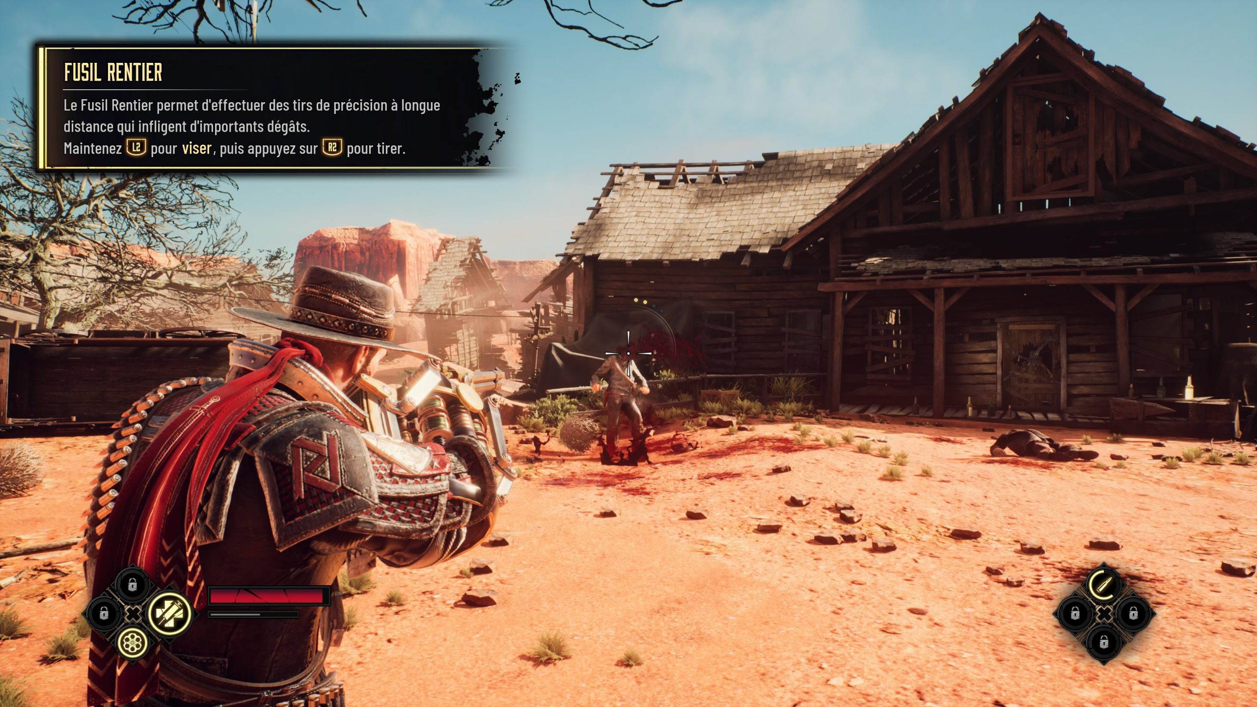 J’étais totalement passé à côté d’Evil West à sa sortie, n’en ayant même jamais entendu parler avant de tomber récemment dessus à très bas prix dans sa version Playstation 5. Sans même me renseigner, mais avec sa promesse de mélanger western et vampires, le tout avec un héros bad-ass adepte de punchlines qu’une bonne série B des années 80 n’aurait pas renié, je me suis lancé dans l’aventure, avant de m’apercevoir que le jeu était développé par Flying Wild Hog, le studio Polonais derrière les récents Shadow Warrior. Et j’avais adoré le premier Shadow Warrior… mais jamais terminé sa première suite, et donc ne me suis même pas procuré le troisième opus. Pour Evil West, adieu la vue FPS, bonjour la vue TPS, puisque si l’on devait résumer assez grossièrement le jeu, l’on pourrait parler d’un mélange entre un Devil May Cry et les récents God of War (qu’il faudra que je fasse, un jour), le tout donc dans une ambiance western, et où notre héros, Jesse Rentier, extermine à coup de six coups, de fusil, de lance-flamme et de gant électrifié des vampires, mais aussi des loups-garous et pas mal d’autres créatures infernales. Premier point mais qui peut sembler anodin, dès le lancement de jeu, en plus du classique choix de la difficulté, le jeu nous propose un choix inédit dans le monde du jeu vidéo. Activer ou non le mode arachnophobe. Alors, étant arachnophobe, et face au côté inédit de la chose pouvant clairement indiquer que ça va loin à ce niveau, en tout cas plus que les 5 ou 6 malheureuses araignées géantes croisées dans les Resident Evil, j’ai bien évidemment activé ce mode. Et voilà, l’aventure commence, cash, après une cinématique avec un beau train qui explose et notre héros qui parcourt le désert sur son cheval, accompagné de son ami Edgar. Tous deux travaillent pour l’institut Rentier, dirigé par le père de Jesse, chassant en toute « discrétion » les créatures de l’enfer que le commun des mortels ne connait pas. Discrétion entre gros guillemets, car vu le bordel qui va se dérouler et le côté explosif de l’aventure, le monde entier devrait bien connaître l’existence des monstres.