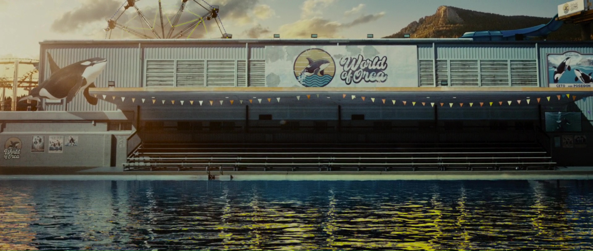 Bon Killer Whale, remplacez le requin habituel par une orque, et voilà. Deux amies en vacances, une orque tueuse, de la survie sur un rocher (tiens ça me rappelle quelque chose) et paf, ça fait des Chocapic. Killer Whale souffre déjà d’un scénario déjà vu, mais ça avec le genre, on le pardonne, si le suspense est efficace. Sauf que le scénario, signé en partie par la réalisatrice, accumule les boulettes. Certaines que l’on pardonne, sinon, pas de film, comme le fait que oui, normalement, quand on part nager dans un lieu isolé, on prévient au moins quelqu’un, au cas où, règle de base quoi. Mais d’autres beaucoup moins pardonnable, comme la manière dont les événements amènent l’élément déclencheur. Mais revenons au début. Après une catastrophe dans la vie de Maddie qui a endommagé son ouïe, et accessoirement, tué son petit ami, le film reprend un an après, quand trainée par sa meilleure amie Trish, les deux jeunes femmes partent en vacances. Sur place, dans un grand aquarium, Ceto, une orque en captivité. Alors que nos personnages y sont de nuit, non, le film n’est pas un slasher promis, mais Maddie est témoin de l’horreur, avec un cadavre dans l’aquarium. Et c’est là que tout déraille et que la raison du spectateur, et la logique, sont mises à rude épreuve. Maddie voit un cadavre, mais le jour suivant, hop là, on part en mer avec sa meilleure amie et le beau gosse du coin qui servira forcément de première victime vu qu’il n’a que deux ou trois lignes de dialogue. Une personne normale serait, peut-être, un poil plus traumatisé, surtout que l’héroïne trimbale déjà avec elle son lot de trauma. Mais ce n’est pas tout, car il faut voir les réactions du personnel de l’aquarium à la découverte du cadavre. Un simple « The cleaner, he fell in the tank » « Again? Get rid of the fish”. Ah, ok, la routine quoi pour eux, et on relâche une orque ni vu ni connu sur une plage, un lieu sans doute assez touristique. Et cela sous-entend donc que Ceto, l’orque, n’en ai pas à sa première victime, loin de là.
