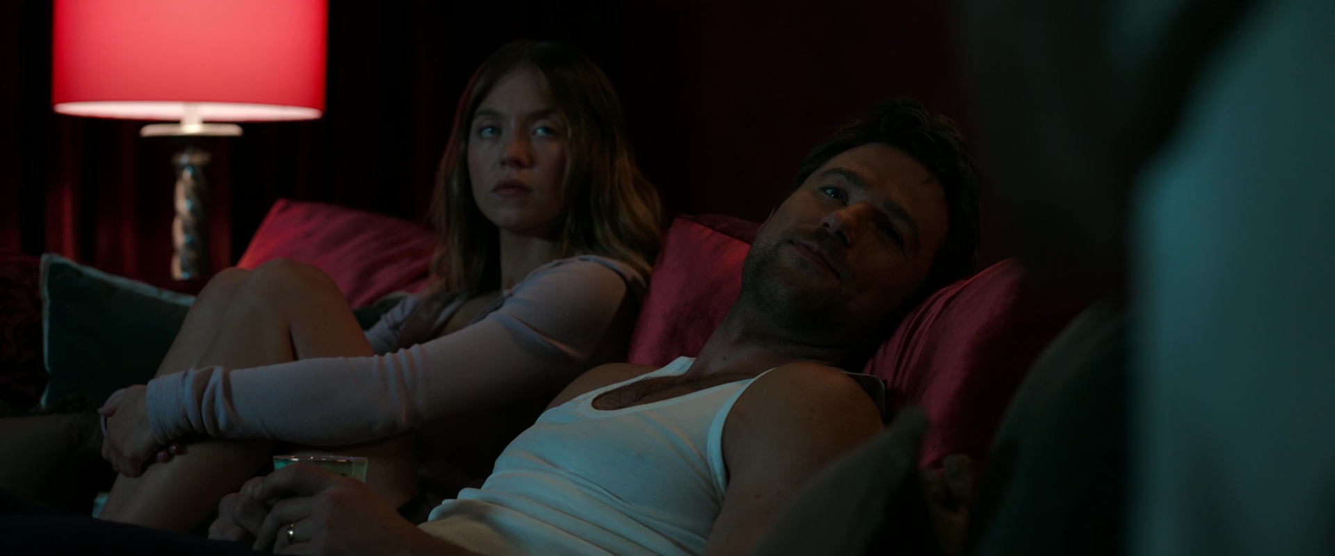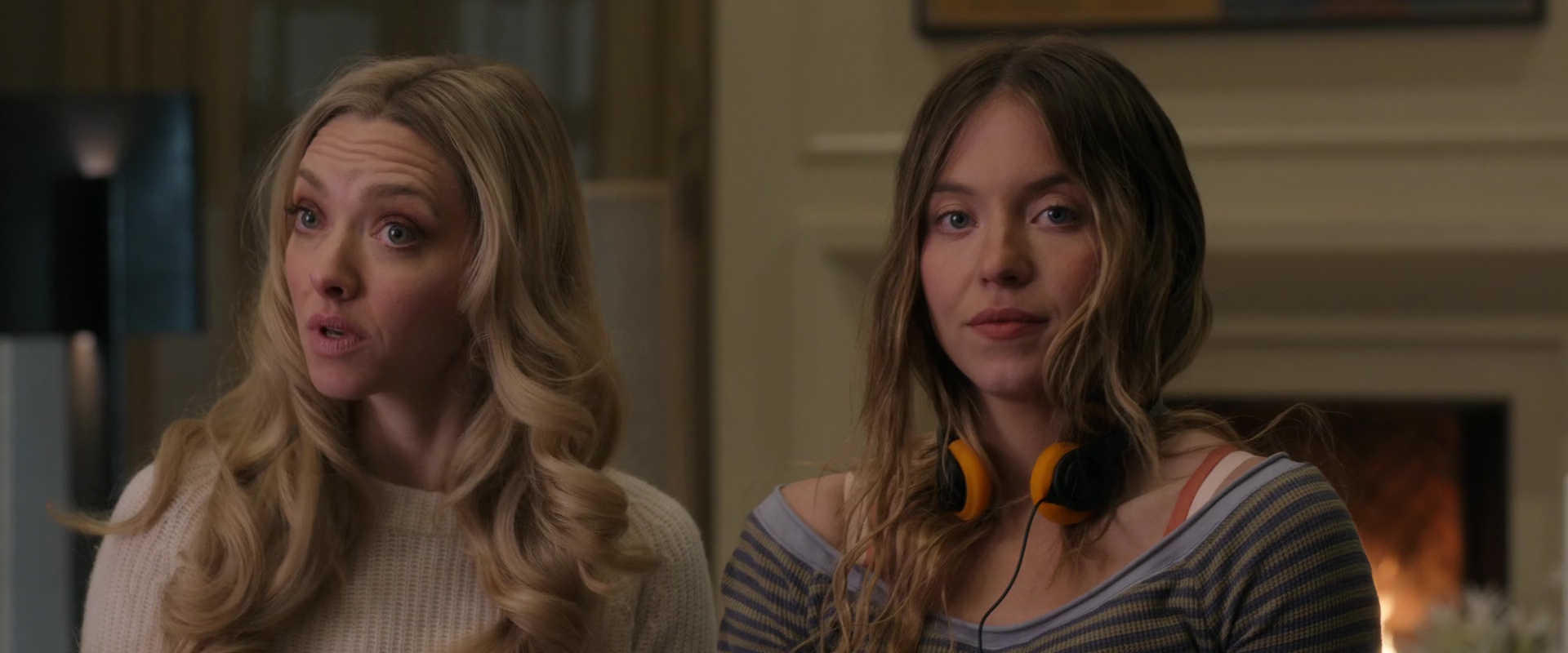 Ce qui nous donne par exemple du Lana Del Rey ou du Taylor Swift qui personnellement, me sortent bien plus du film pour me ramener dans le monde réel de la vérité véritable que dans l’univers supposé aisé du film. L’autre point qui fait peur d’entrer de jeu, c’est qu’au départ, le film nous met un jeu extrêmement théâtral dans les pattes, en particulier pour les deux stars du film, Amanda Seyfried et Sydney Sweeney, à tel point que je me suis demandé si je n’allais pas assister à du théâtre filmé pour un huis clos dans une maison de bourges. Mais modérons mes mots, les passages musicaux tape-à-l’œil ne sont pas si fréquents, et le côté théâtral, comme pour appuyer bien du doigt le côté faux de l’ouverture, ses faux semblants donc, disparaît par la suite pour livrer une aventure qui sonne bien plus naturelle. Et au final, malgré quelques petites longueurs, notamment dans sa mise en place, et bien j’ai passé un bon moment devant cette Femme de Ménage, même si on ne la voit pas nettoyer tant que ça l’intérieur de la maison. Dans les faits, au départ, tout semble très simple, avec une Amanda Seyfried en mère un brin manipulatrice et qui pète un câble pour un oui ou pour un non, change d’avis comme de chemise, et une Sydney Sweeney qui essaye tant bien que mal de cacher un lourd passé et n’a pas forcément d’autres choix que de subir et de s’accrocher pour s’en sortir. Et ça fonctionne plutôt bien, le film mettant les deux femmes en avant. Les figures masculines sont là également, mais le mari n’entrera que progressivement dans le récit, tandis que le jardinier, que la mise en scène nous vend, avec son mutisme volontaire (et une phrase clé en Italien non sous-titré), comme important, ne servira finalement à rien. Du début à la fin. Il ne fait qu’acte de présence. Sans doute car dans le fond, le métrage dure déjà 2h10 et a préféré ne pas s’embêter avec des détails supplémentaires. Le métrage se focalise donc clairement sur les déboires de Millie au sein de la famille Winchester, de la pauvre petite femme voulant s’en sortir et pénétrant dans l’univers de la famille riche, avec grande maison, grand jardin, belle porcelaine, avec forcément, des doutes, manipulations et un peu de séduction pour la route.