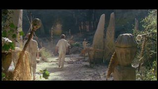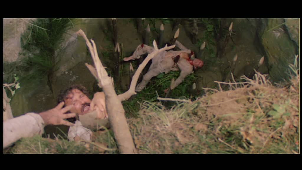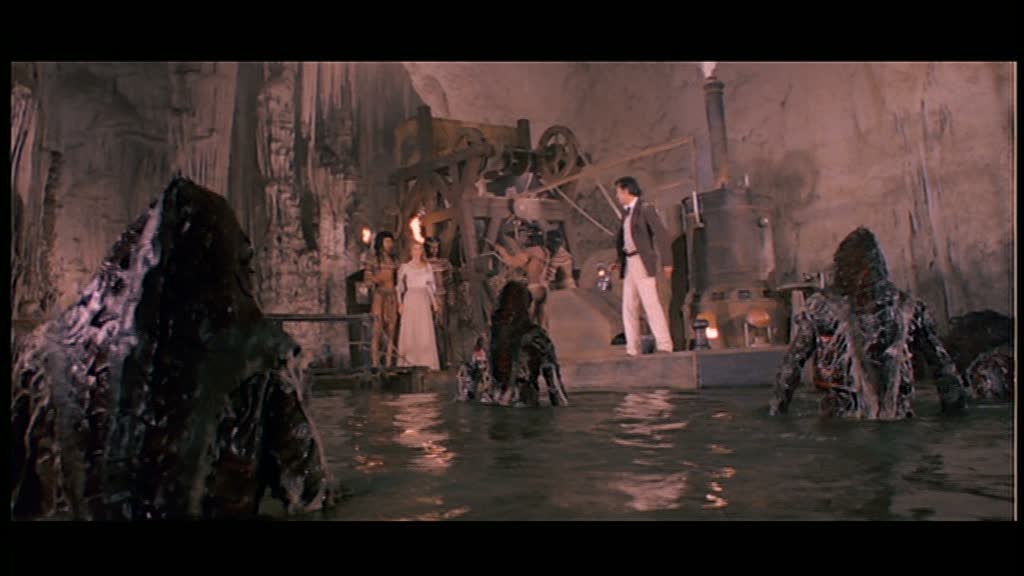 Leurs apparitions viennent alors décrédibiliser un métrage qui pourtant a tout du très sympathique film d’aventures mâtiné d’un peu de fantastique. Heureusement, comme leurs apparitions sont donc rares, vu que les victimes le seront également, on arrive à passer outre ce défaut la majeure partie du temps. Sauf pour le final, où ils passent clairement sur le devant de la scène, puisqu’il faut conclure l’histoire. Le final tente probablement d’en faire beaucoup trop d’ailleurs, entre des dizaines d’hommes poissons à l’écran, une irruption volcanique filmée soit avec des maquettes un peu trop voyantes (mais tout de même bien loin du volcan d’Alien la Créature des Abysses de Margheriti en 1989), soit avec des images d’archives ne fonctionnant pas totalement. Oui, Sergio Martino a vu les choses en grand pour cette année 1979 (il signait également Le Grand Alligator, encore un film exotique avec des indigènes et un gros méchant monstre), peut-être bien trop grand vu son budget, mais son Continent des Hommes Poissons n’est pas le nanar annoncé. Il aurait sans doute même pu être un excellent divertissement, mais au final, reste une agréable série B, lorgnant à plusieurs occasions dangereusement avec le Z.