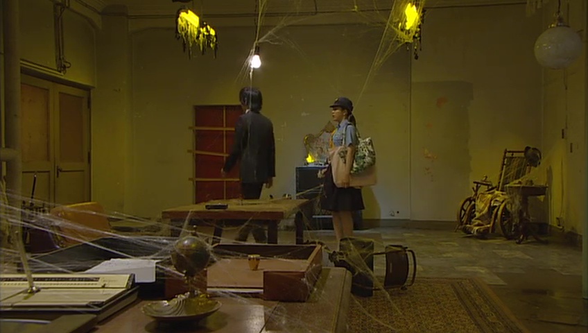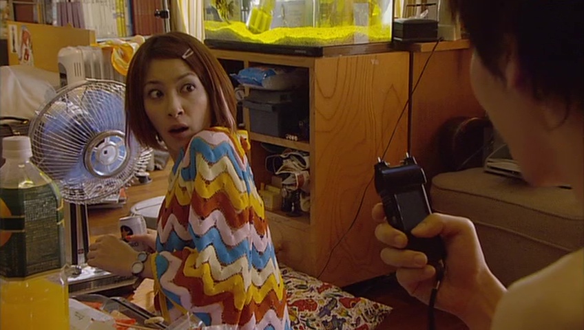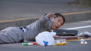 Il y a certains films, on a beau voir qu’il s’agît d’une comédie, ou bien lire le synopsis, nous ne sommes pour autant pas prêts au spectacle proposé par le réalisateur scénariste, ici Kera, aussi appelé Sandorovich Keralino. Pourtant, tout est réuni pour nous amener dans un univers que l’on connait. Des idoles, quelques têtes connues, un ton qui s’annonce léger et inoffensif. Si bien qu’en lançant le métrage, pendant une dizaine de minutes, j’ai dû vérifier que c’était bien le bon film que j’avais inséré. Non pas que Crime or Punishment n’est pas drôle, non, il est même parfois tordant, mais l’humour qu’il utilise n’est pas véritablement l’humour que j’attendais. Ici, on est clairement dans un métrage jouant sur le côté totalement absurde voir nonsensique des situations. Un salaryman d’une quarantaine d’année, veuf, se lève, part au supermarché du coin, fait ses achats, a quelques rencontres improbables, se retrouve avec des achats qu’il ne comprend même pas, prend le train, rencontre un homme louche mais inoffensif dans la rue, perds son téléphone, puis de manière tout aussi étrange, est témoin d’un meurtre… avant de se faire écraser par un camion et de rendre son dernier souffle sous les yeux d’une jeune idole, héroïne de notre film. Ici commence notre métrage, qui se joue de nous et de nos attentes, en jouant sur un humour particulier mais qui fait souvent mouche, jouant sur les quiproquos, les voix off, l’absurde des situations et des personnages, voir sur le grotesque par moment. Une mise en bouche qui finalement surprend mais fonctionne du tonnerre, même si sur la durée, le film s’égarera par moment, à force de multiplier les personnages