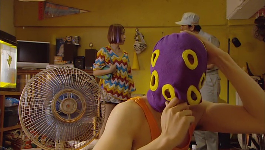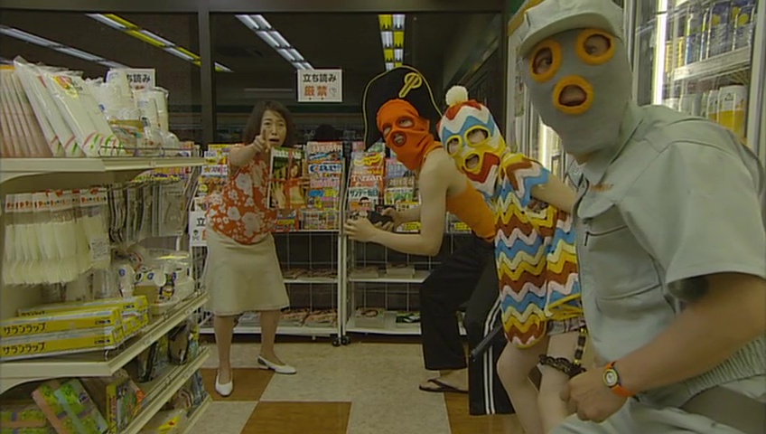 Car Crime or Punishment, c’est avant tout l’histoire d’une jeune idole qui n’a clairement pas de bol, qui n’arrive pas à percer, alors qu’elle a débuté il y a quelques temps avec une amie à elle, qui elle, arrive au sommet. Ce qui clairement n’est pas au goût de leur agent, passant son temps à jongler entre la timidité et les échecs de l’une, et les caprices de l’autre. Mais d’entrée de jeu, le métrage nous présente en réalité l’intégralité de ses personnages et donc joue sur un montage non linéaire, passant d’une idole paumée à un groupe de trois braqueurs légèrement perchés et bras cassés, avec des cagoules ridicules et un taser qui a des effets surprenants, puisque donnant autant de douleur que de plaisir. Lorsque sa situation principale est enfin en route, à savoir qu’après une erreur, notre idole va devoir accepter pendant une journée d’être chef de la police, le métrage rajoute alors de nouveaux personnages, et n’hésite donc pas, pour faire le lien, à revenir en arrière sur une année voir plus pour nous présenter de nouveaux personnages, et donc, à plus grande échelle, de nouveaux enjeux. Et en réalité, voilà, par moment, on a l’impression que le film s’égare, ou plutôt ne sait plus quelle intrigue il veut véritablement mettre en avant, ou quel personnage il veut faire le point central de son récit. Est-ce grave ? Par moment oui, car du coup, on a l’impression que ça n’avance pas vraiment. Heureusement oui, Crime or Punishment est une comédie, et dans ce sens, il se rattrape clairement, car il est dur de ne pas rire face à certaines des situations improbables qu’il va mettre dans les pattes de ces personnages. Une idole qui va devenir chef de la police, un tueur en série qui découpe ses victimes et qui est policier, un pistolet pour taser qui a l’effet opposé, un braquage qui tourne mal.