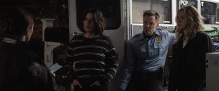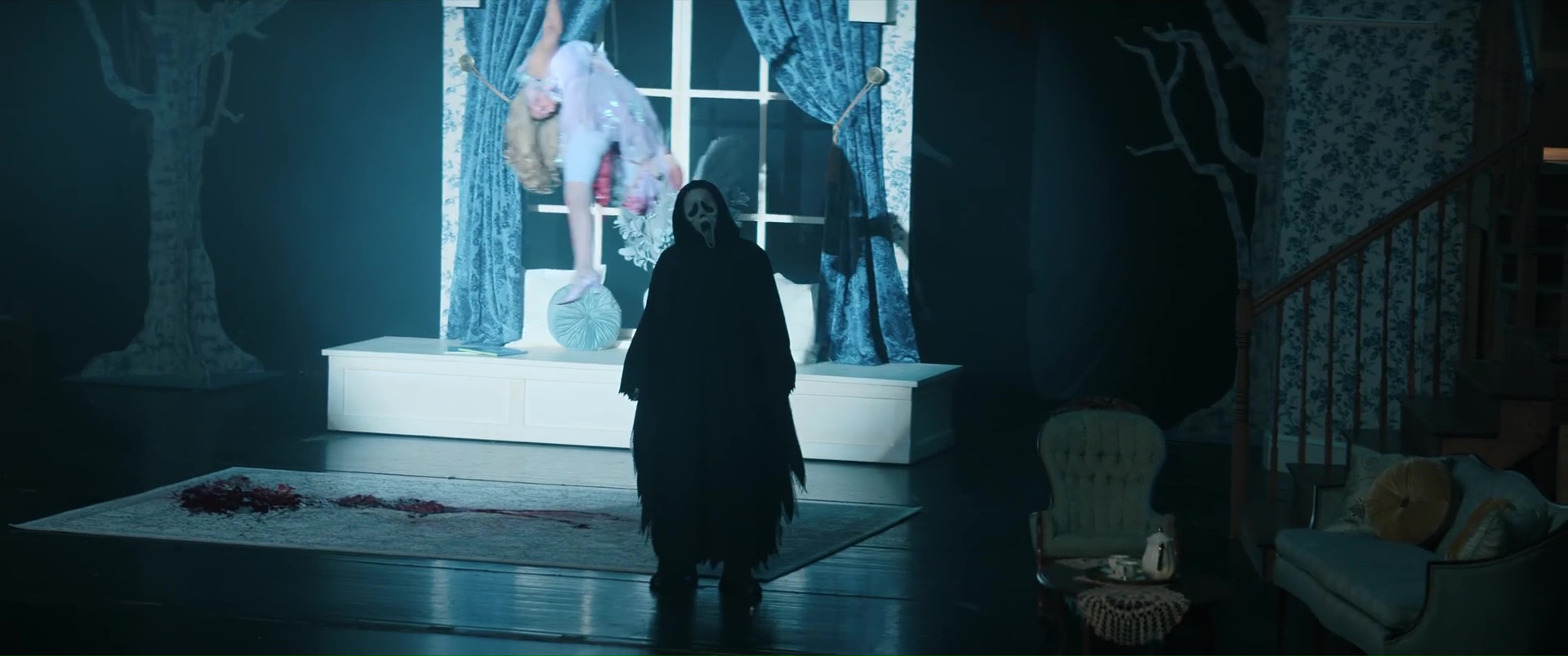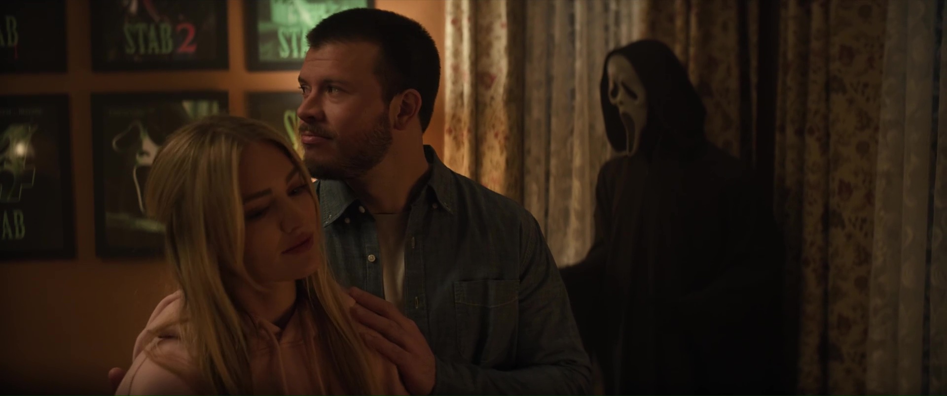 Pourtant, cette scène d’ouverture, loin d’être la meilleure, laissait au moins présager une prise de risque, du sang neuf, en jouant à la fois avec le fameux côté méta de la saga (un couple qui loue la maison ayant servie au tournage de la saga fictive Stab), et donc forcément du fan service pour le fan de la première heure, mais aussi une volonté d’aller de l’avant, en brulant littéralement à la fin de la scène les lieux. Brûler le passé pour évoluer donc. Que nenni, on comprend bien vite que ce geste n’a en réalité aucune valeur, aucune utilité dans le reste du récit, et semble plus penser pour terminer l’ouverture sur des plans iconiques et possiblement pour faire de jolis plans pour la bande annone qui feront parler le fan et le rendront curieux. Car le reste du programme est du niveau de Scream 5 et 6, en pire. Oui mes amis, cela est possible. On retrouve Sydney, mariée et avec une fille qu’elle a appelé Tatum (comme sa meilleure amie morte dans le premier film), et forcément, un ou plusieurs nouveaux tueurs débarquent dans sa ville (le film quitte encore Woodsboro donc, après New York dans le précédent) afin de la traquer, elle et sa famille, et quiconque sera sur leur route. Et lister tout ce qui ne va pas équivaut ici à faire une liste de courses pour une famille nombreuse. Oui, il y a de quoi dire. On pourrait parler, avant de rentrer dans le gras, de tout ce qui est technique.