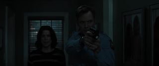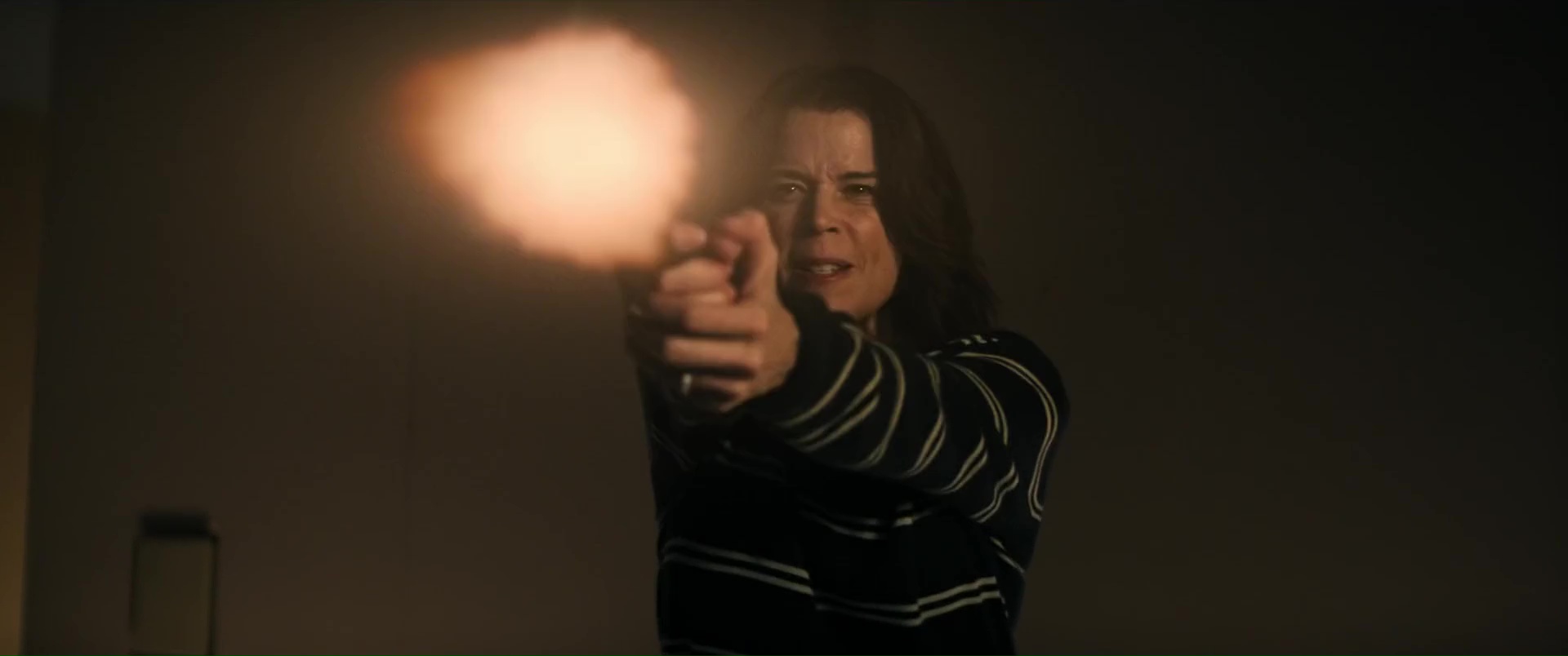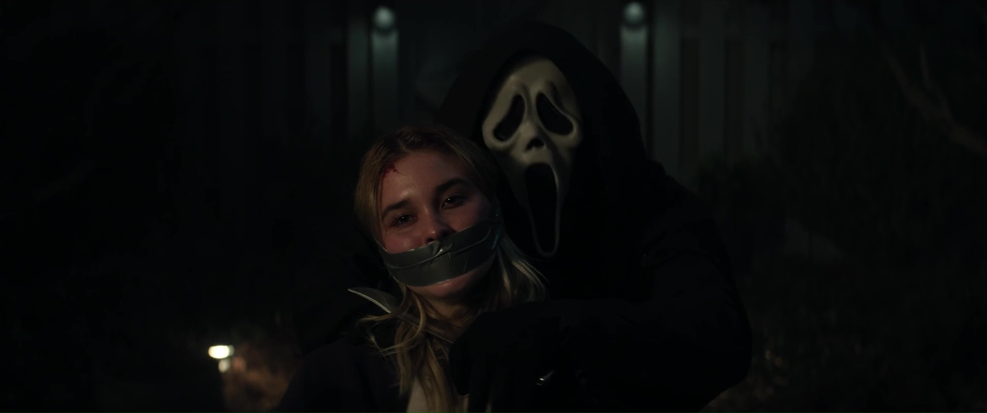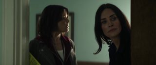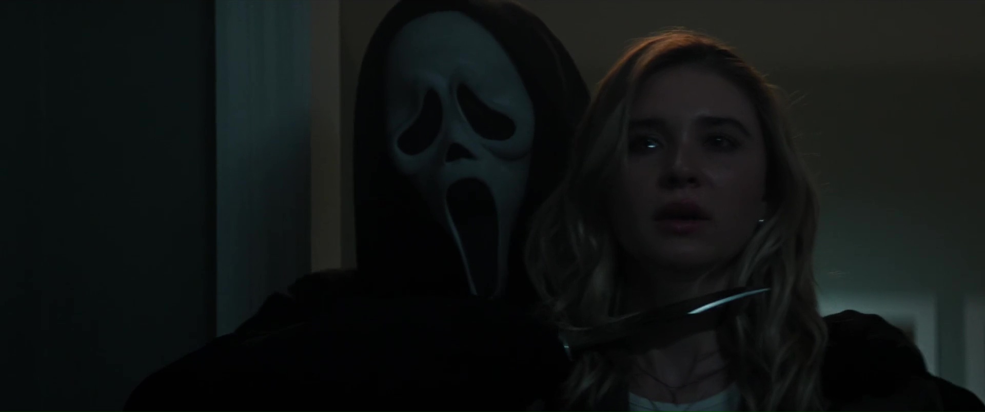 Williamson n’a jamais brillé comme réalisateur, et ce n’est assurément pas avec Scream 7 qu’il va nous faire changer d’avis, tant il filme l’ensemble de manière plate et semble ne jamais avoir d’idées. Il échoue même à créer du suspense, soit car sa mise en scène et son montage manquent de tout, tout simplement, soit car il n’ose pas aller dans les bonnes directions. On pourrait citer la scène, bonne sur le papier, où Sydney et Tatum fuient un tueur en passant par une Panic Room, et en se glissant entre les murs de la maison, où le tueur, les entendant, va frapper un peu au pif le mur avec son couteau. Dans les faits, une scène idéale pour le suspense, qui permet d’augmenter les enjeux, peut permettre de blesser un des personnages et donc d’augmenter chez l’autre la tension, l’émotion. Sauf qu’ici, rien de rien, ça ne joue que peu sur le silence, ça se termine presque aussi vite que c’est arrivé, et le film n’ose toujours pas faire du mal à ses personnages importants. C’était déjà flagrant dans Scream 6, ça l’est aussi ici, Neve Campbell, Courteney Cox (ici pour faire de la figuration), la fille de Neve et les rares survivants de Scream 6 qui se retrouvent dans le récit sans trop savoir pourquoi (vu que les héroïnes, elles, ne sont plus là) ne peuvent pas mourir, ne peuvent pas être trop blessés, point.