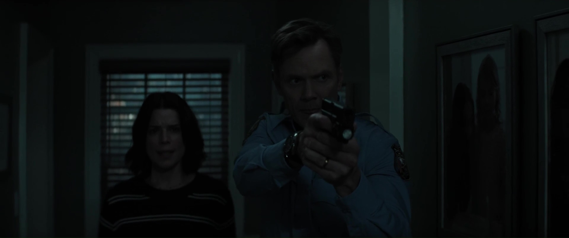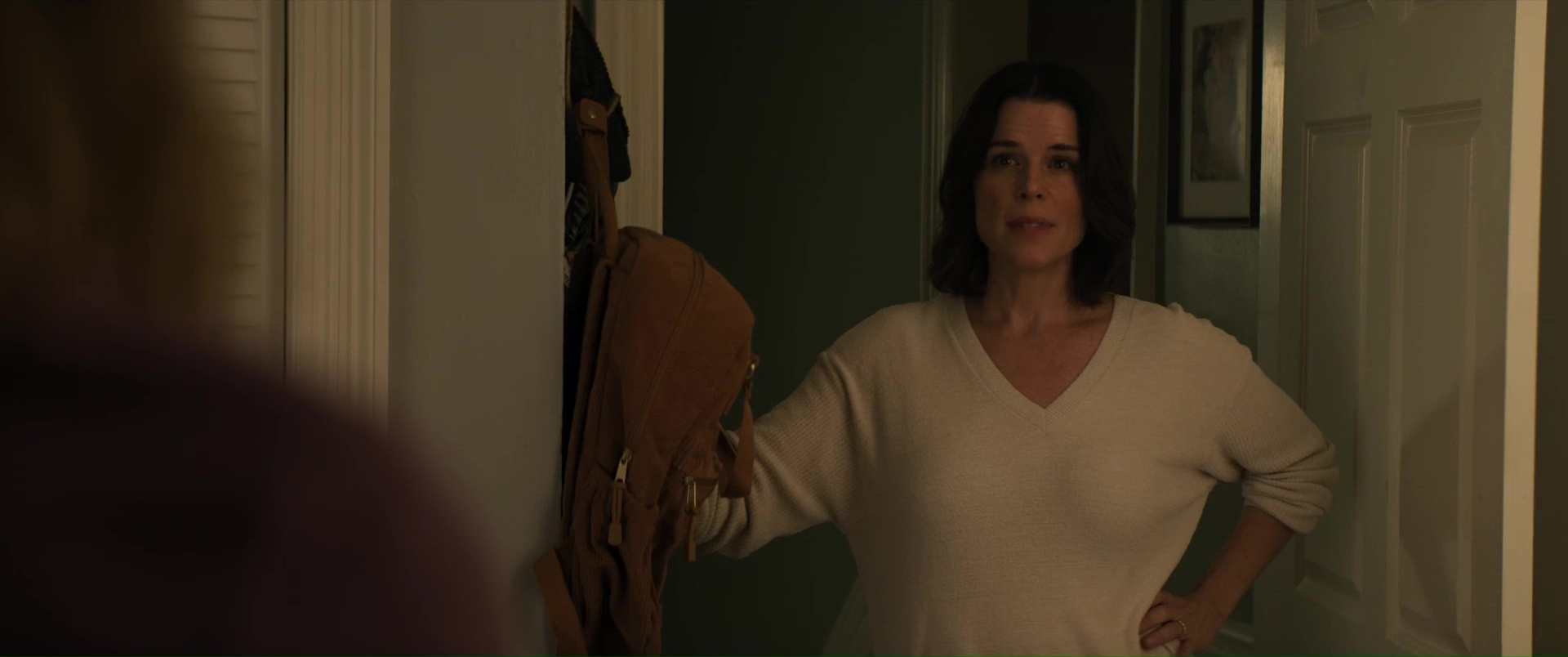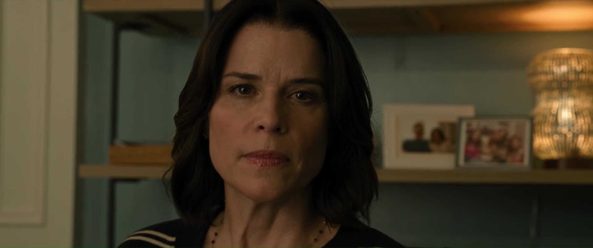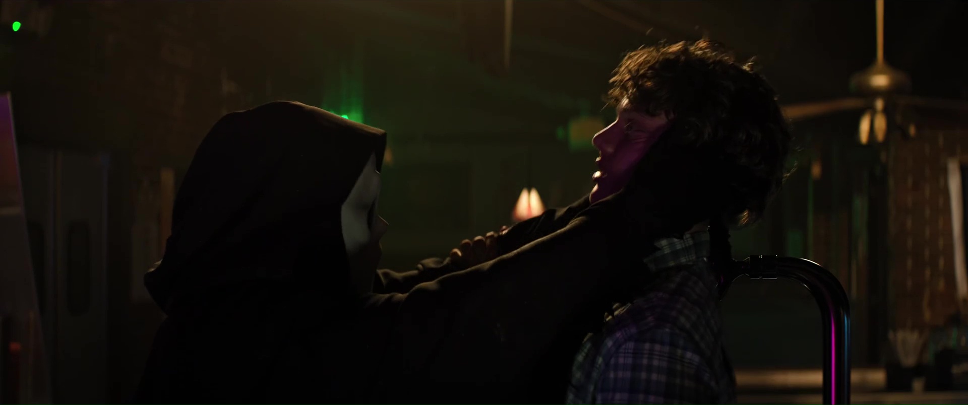 Williamson n’a jamais brillé comme réalisateur, et ce n’est assurément pas avec Scream 7 qu’il va nous faire changer d’avis, tant il filme l’ensemble de manière plate et semble ne jamais avoir d’idées. Il échoue même à créer du suspense, soit car sa mise en scène et son montage manquent de tout, tout simplement, soit car il n’ose pas aller dans les bonnes directions. On pourrait citer la scène, bonne sur le papier, où Sydney et Tatum fuient un tueur en passant par une Panic Room, et en se glissant entre les murs de la maison, où le tueur, les entendant, va frapper un peu au pif le mur avec son couteau. Dans les faits, une scène idéale pour le suspense, qui permet d’augmenter les enjeux, peut permettre de blesser un des personnages et donc d’augmenter chez l’autre la tension, l’émotion. Sauf qu’ici, rien de rien, ça ne joue que peu sur le silence, ça se termine presque aussi vite que c’est arrivé, et le film n’ose toujours pas faire du mal à ses personnages importants. C’était déjà flagrant dans Scream 6, ça l’est aussi ici, Neve Campbell, Courteney Cox (ici pour faire de la figuration), la fille de Neve et les rares survivants de Scream 6 qui se retrouvent dans le récit sans trop savoir pourquoi (vu que les héroïnes, elles, ne sont plus là) ne peuvent pas mourir, ne peuvent pas être trop blessés, point.