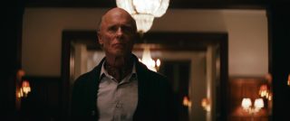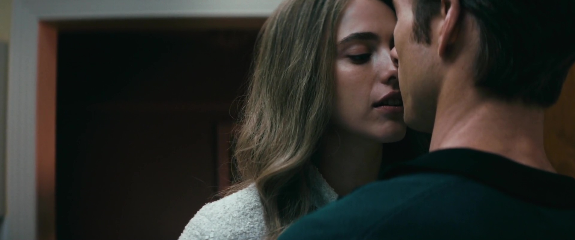 Contrairement à Running Man et son futur sombre, L’Ultime Héritier joue donc tout simplement dans la cour du film plus actuel, et lorgne vers la comédie noire. Est-ce que ça marche ? Oui, dans le fond, j’aurais passé un très bon moment devant le métrage, tout en me disant qu’avec quelques ajustements dans l’écriture, pour une approche constante thématiquement parlant tout du long de l’aventure, ça aurait pu, voir dû être beaucoup mieux. Alors, analysons ça, tout en ne révélant pas les cartes que le métrage veut absolument jouer, peu importe que ça fonctionne, ou pas. Le métrage, d’entrée de jeu, et c’est presque annoncé par le personnage qui raconte son histoire à un prêtre, et donc, par extension, aux spectateurs, mais l’histoire sera aussi invraisemblable que tragique. Le côté invraisemblable, évidemment, ce sera tout ce qui sera traité sur le ton de la comédie noire. Quand au côté tragique, ça lorgnera plus vers le drame et le thriller bien plus classique. Vouloir mélanger les deux, pourquoi pas, surtout que chaque partie a ses grandes qualités. Malheureusement, l’ensemble se fait parfois déséquilibré, comme si chaque partie du récit voulait manger un peu plus de temps d’écran, quitte à parasiter l’autre. En gros, toute la première partie du récit, avec les premiers meurtres commis, le passé du personnage, tout ça, ce sera clairement de la pure comédie noire, et ça fonctionne, entre personnages perchés, de l’ironie mordante, des acteurs qui se font plaisir en cabotinant (Zach Woods et Topher Grace, par exemple), et même un comique de répétition qui va amener le FBI dans l’intrigue, même si au final, ils seront totalement inutiles. Ce côté comédie noire parfois jouissif, il s’absentera alors pour la seconde partie du récit, pour ne revenir que lors du final. Le côté plus classique, plus tragique, forcément, il concernera les gros enjeux de l’histoire avec le grand-père (impérial Ed Harris comme toujours), mais surtout la femme fatale du récit, Margaret Qualley, bien que finalement bien trop souvent en retrait pour pleinement fonctionner.
