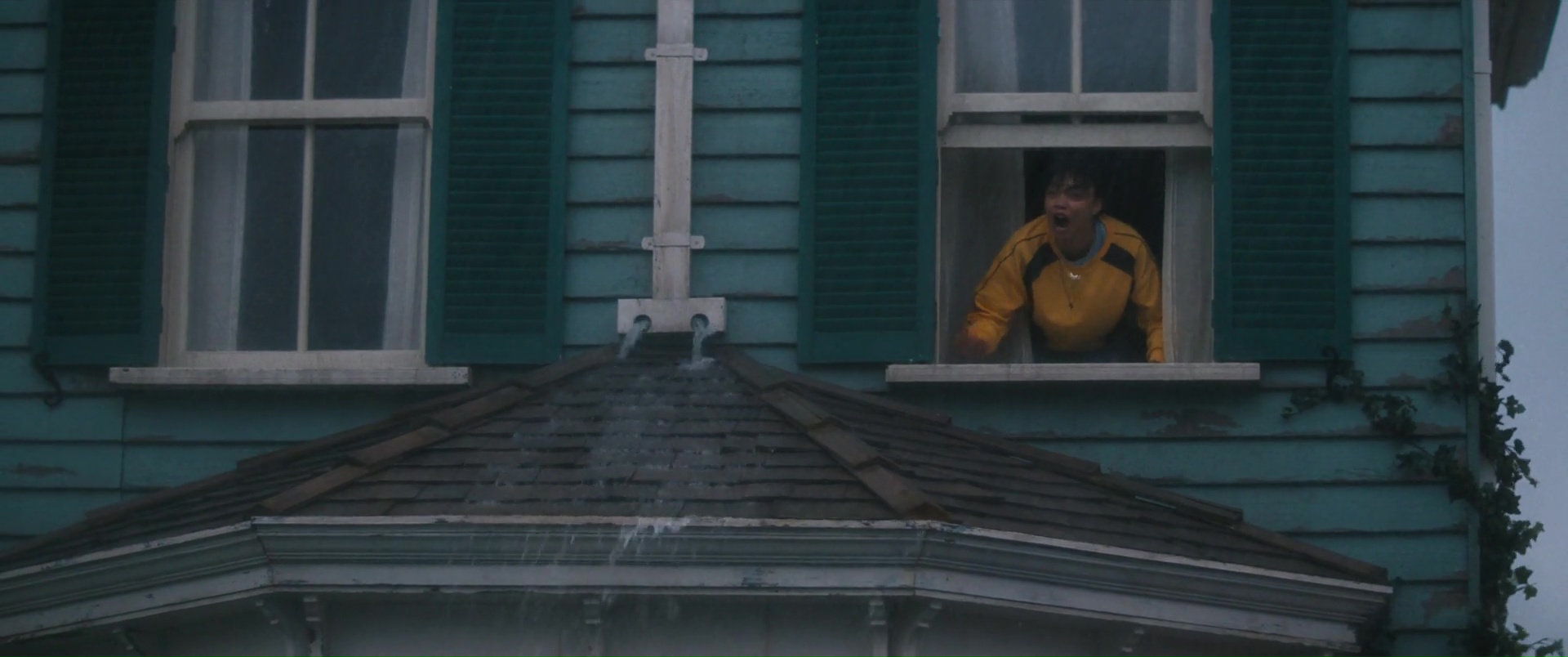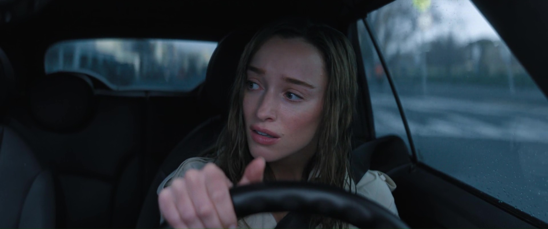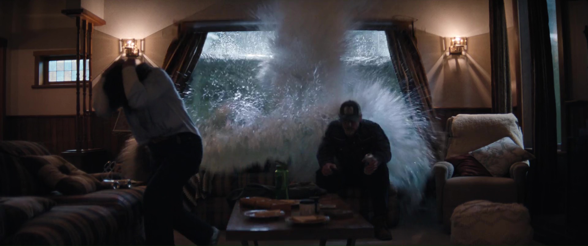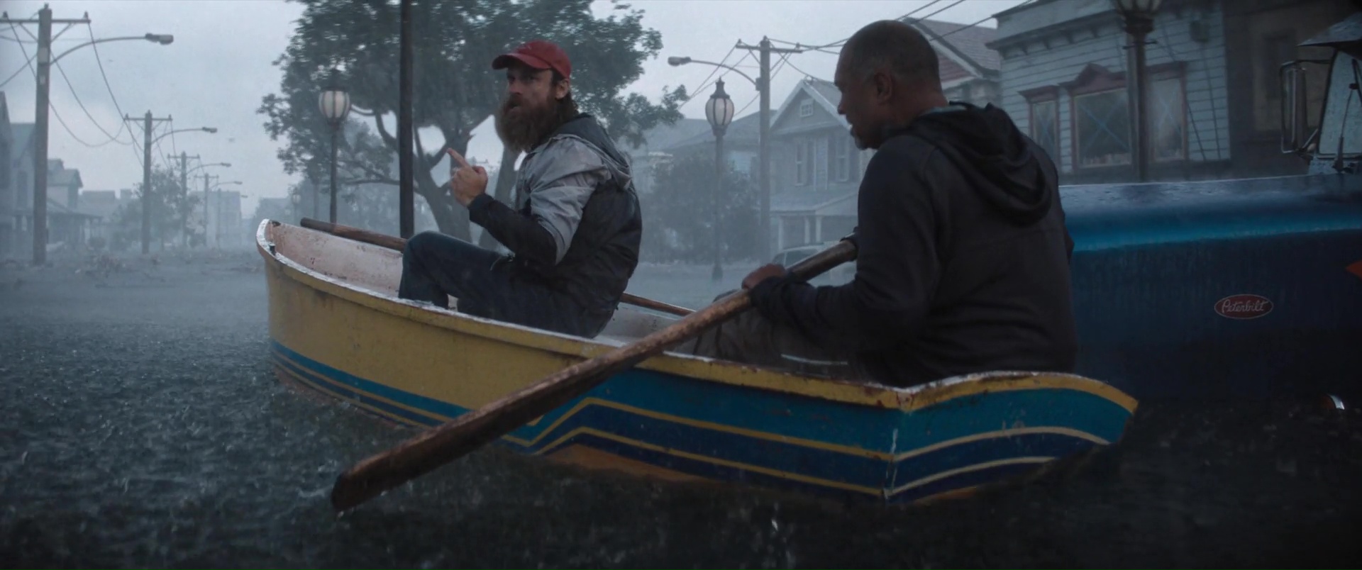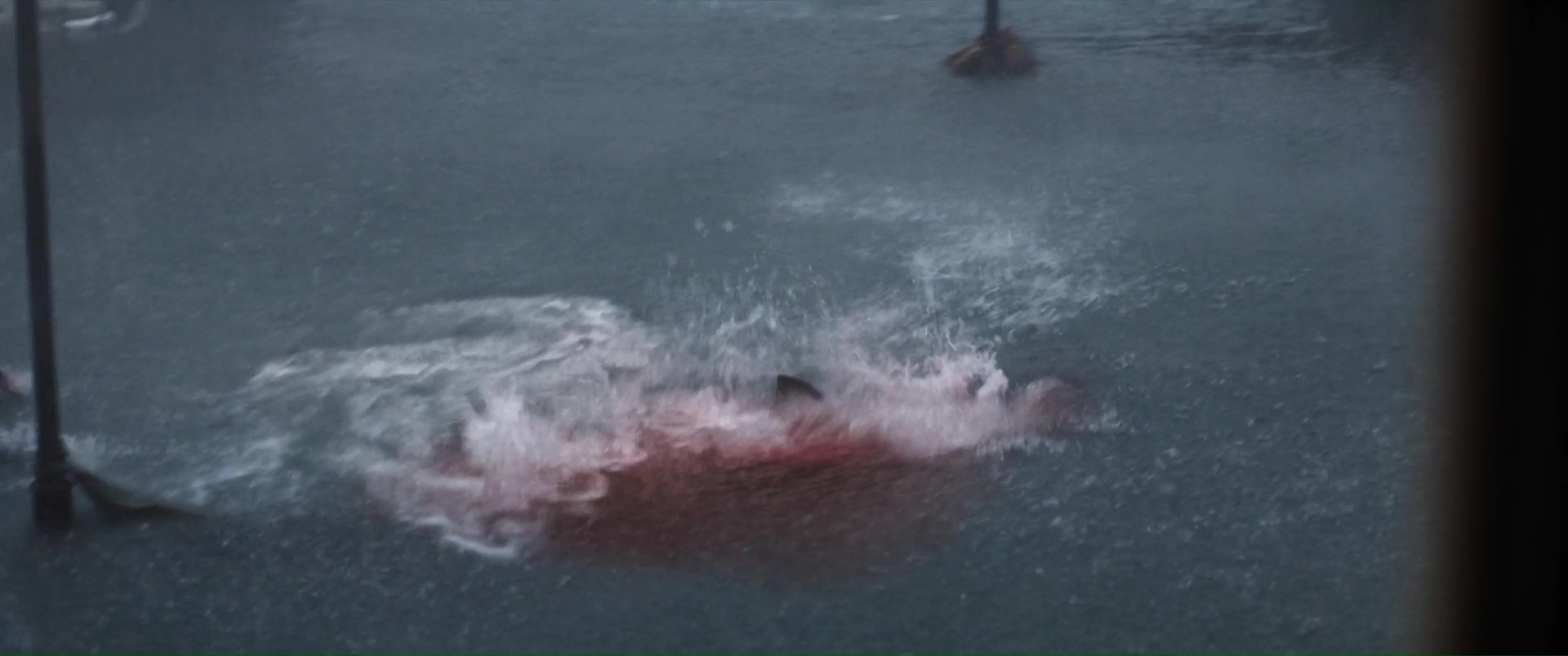 Ce qui est plutôt dommage, pour un film à suspense. Ici donc, encore un ouragan, une ville qui se retrouve submergée, et une poignée de personnages qui vont devoir survivre à la nature, encore plus que les eaux qui montent amènent des requins marteaux dans l’équation. Au menu ? Une jeune femme enceinte qui se retrouve bloquée dans sa voiture (Phoebe Dynevor), une jeune femme qui a limite peur de sortir de chez elle depuis la mort de ses parents (Whitney Peak), trois enfants qui ont la joie de vivre dans une famille d’accueil détestable et manipulatrice, et au loin, Djimon Hounsou qui va tenter pendant tout le film de rejoindre ce bordel, car sa nièce est dans les personnages déjà cités. Rien de bien neuf au niveau des personnages donc, tout comme des situations, puisque l’on retrouvera les personnages secondaires là juste pour se faire bouffer, dans certaines situations rappelant encore une fois Crawl d’Alexandre Aja, le personnage bloqué avec l’eau qui monte, et une aide qui ne viendra pas, forçant les personnages à revoir leur instinct de survie à la hausse. Le film ne brille pas par son scénario, ni par ses situations, et pour le coup, Tommy Wirkola, qui signe seul le script, n’a pas dû bien se fouler. Là où c’est bien plus problématique en réalité, c’est que toutes ces situations et personnages clichés pourraient malgré tout fonctionner. Crawl n’était par exemple pas non plus un modèle d’écriture. Mais il savait gérer et étirer son suspense. Sauf qu’ici la tension ne prend jamais véritablement, le film se faisant parfois trop sérieux pour son propre bien, et étonnement parfois pas assez sérieux, là aussi pour son propre bien. Ce qui donne des situations prometteuses parfois éclipsées en 4 secondes et demi, et à d’autres moments des situations traitées par-dessus la jambe, avec ce qui semble être un second degré qui aurait presque peur de s’assumer. Ce qui fait que le métrage s’éparpille au niveau du ton, pouvant enchaîner la séquence un brin risible de l’accouchement (avec playlist zen à la clé), pour un moment sans doute censé être un poil dramatique, et la riposte à base de viande et de dynamite de la part des enfants qui s’annonce fun, mais qui au final, reste anecdotique et éclair.