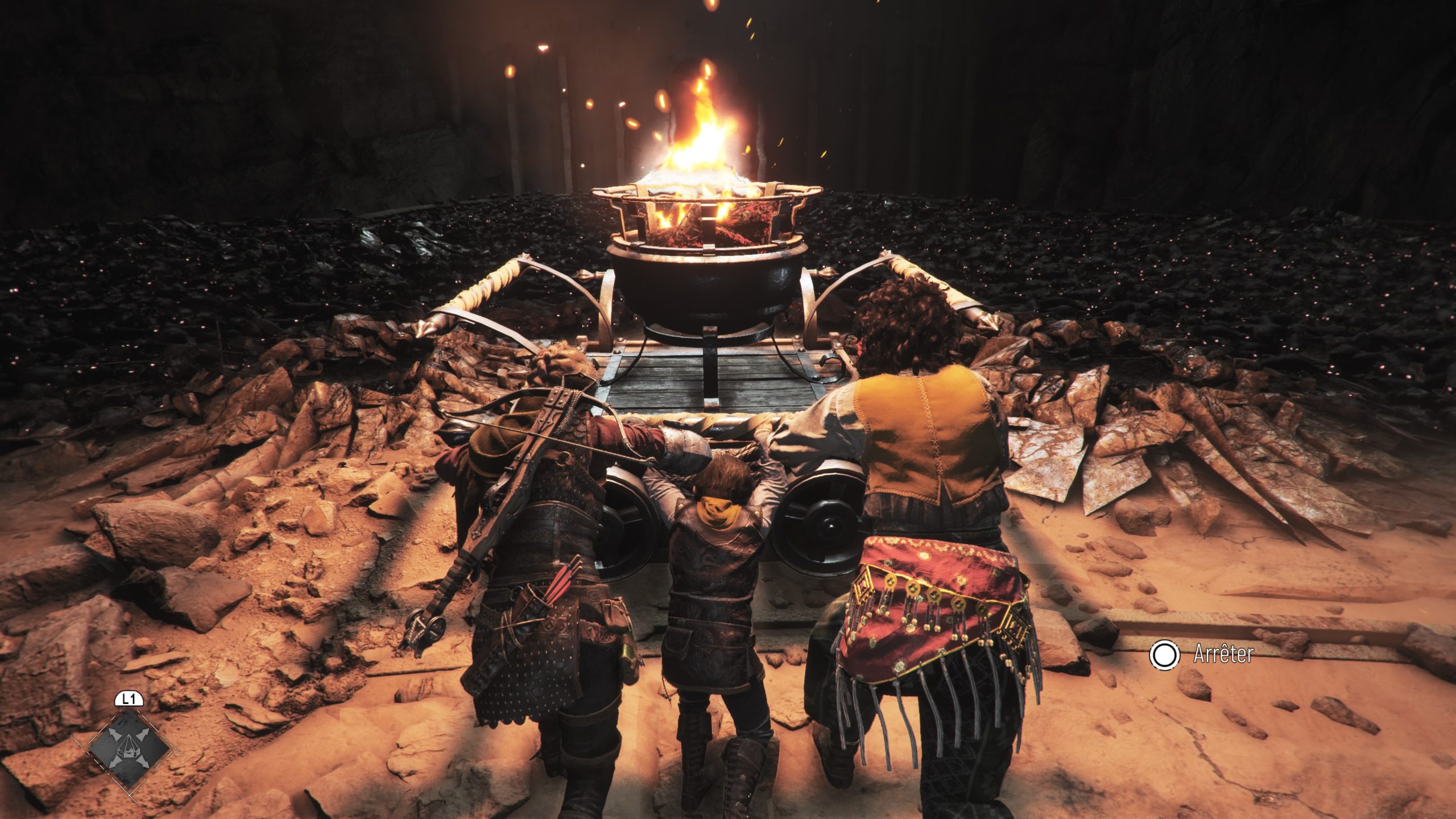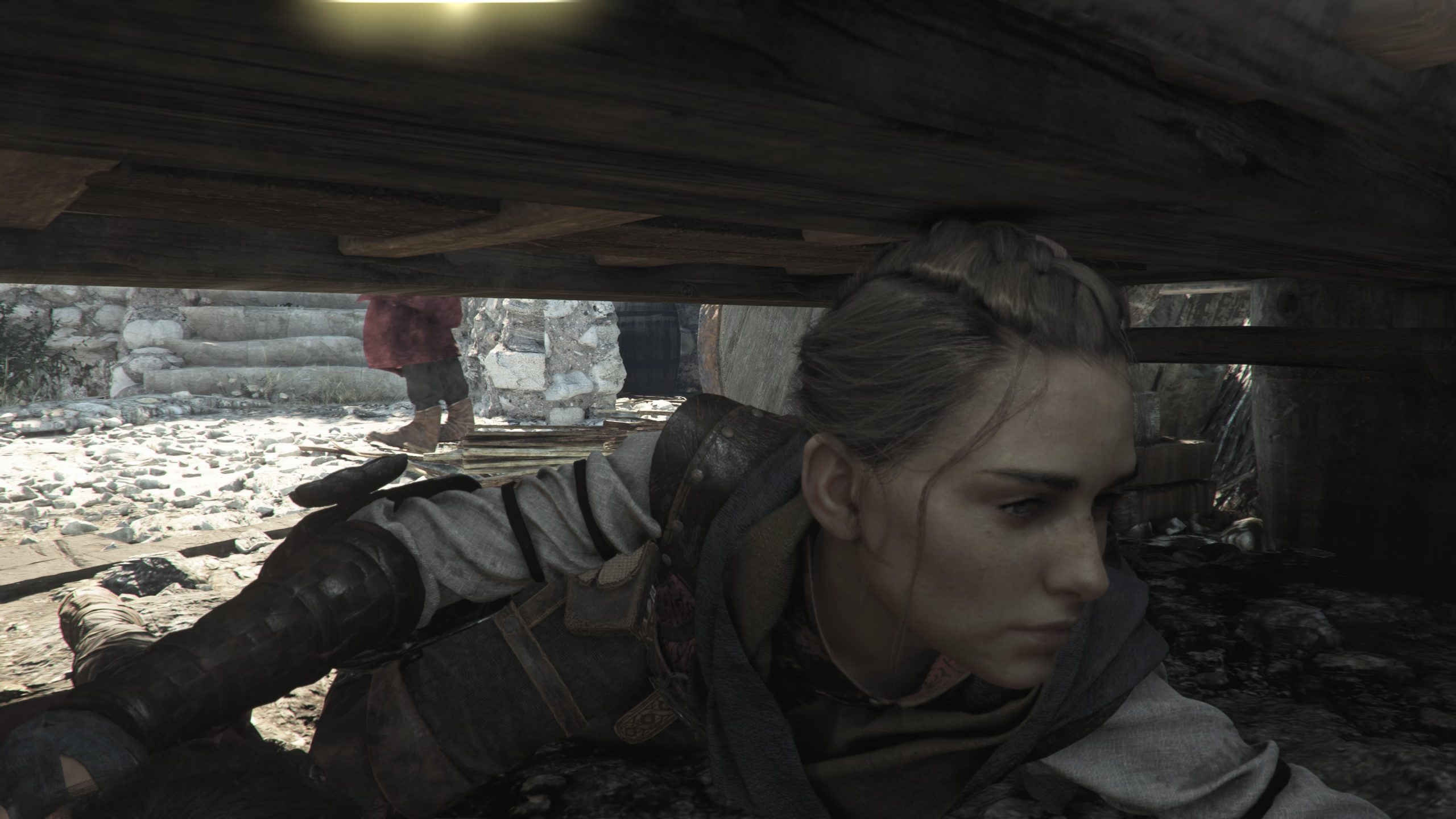 Niveau gameplay, la formule ne change pas énormément comparé au premier jeu. Le tout est toujours assez rigide, nos armes restent les mêmes, avec la possibilité de lancer des objets, des pots, de se servir de notre fronde, avec plusieurs projectiles possibles, du caillou de base, puis en se servant du feu (pour allumer les torches par exemple), ou à l’opposé pour éteindre des feux, le rendre bien plus lumineux sur une plus grande surface. Rien de franchement nouveau, on notera toutefois l’ajout d’une arbalète, permettant de mettre à terre des ennemis plus costaud, mais aux munitions franchement très limitées, sauf une fois bien améliorée (permettant de récupérer les carreaux sur les corps), et lors de moments bien particuliers où le jeu se montre alors généreux. Mais il y a dans tout ce que j’ai dis jusque là deux petits défauts qui viennent s’inviter dans le design du jeu et qui sont parfois gênants. Le premier concernera l’histoire. Car si l’histoire dans sa globalité est intéressante et que nos personnages sont attachants, quelques éléments viennent entacher le boulot général de l’équipe. En premier lieu, il y a, au final, la durée dudit jeu. Là où A Plague Tale Innocence se parcourait en 10 heures plutôt bien rodées, Requiem lui vise le double ou quasi. Il m’aura fallut 17 heures environ, en fouinant un peu pour récupérer quelques bonus, pour boucler l’aventure. Et quelques longueurs ont pointées le bout de leur nez, en particulier lors de l’arrivée du joueur dans un nouvel endroit, La Cuna. Alors que l’on a déjà déambulé dans le jeu pendant 6 ou 7 heures à ce stade, le jeu nous offre une zone bien plus ouverte qu’avant et nous propose d’explorer un peu, ralentissant le rythme.