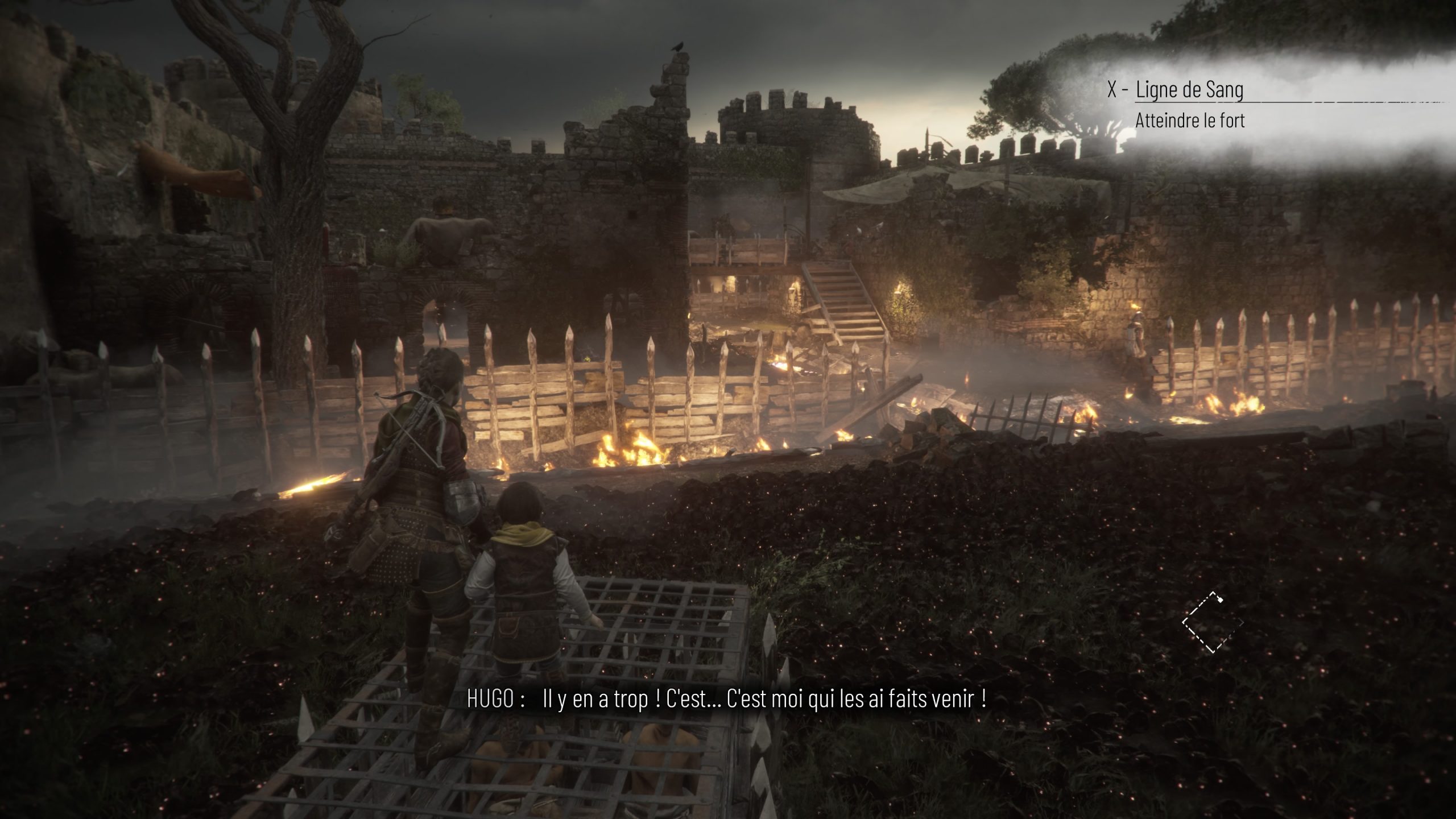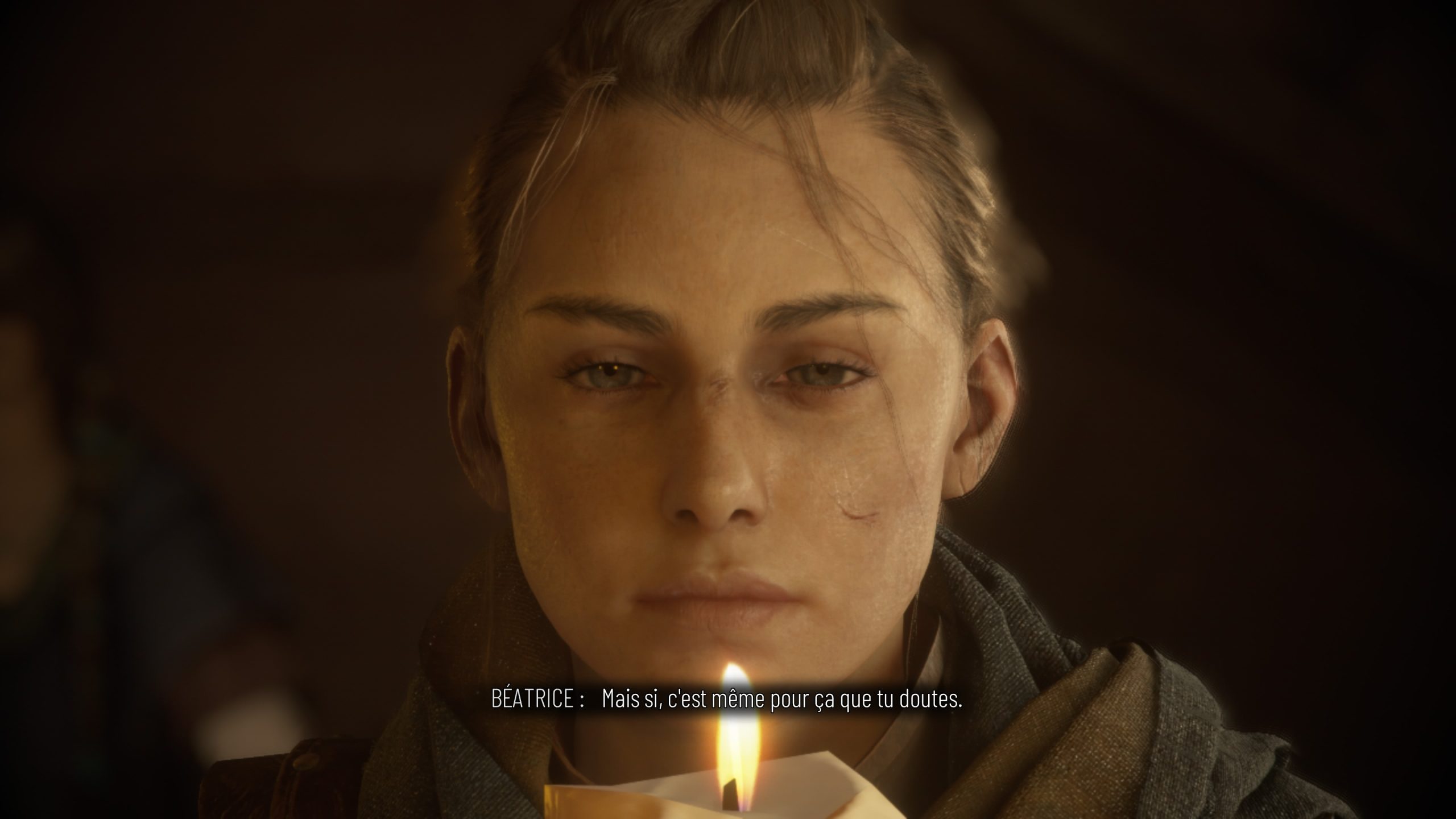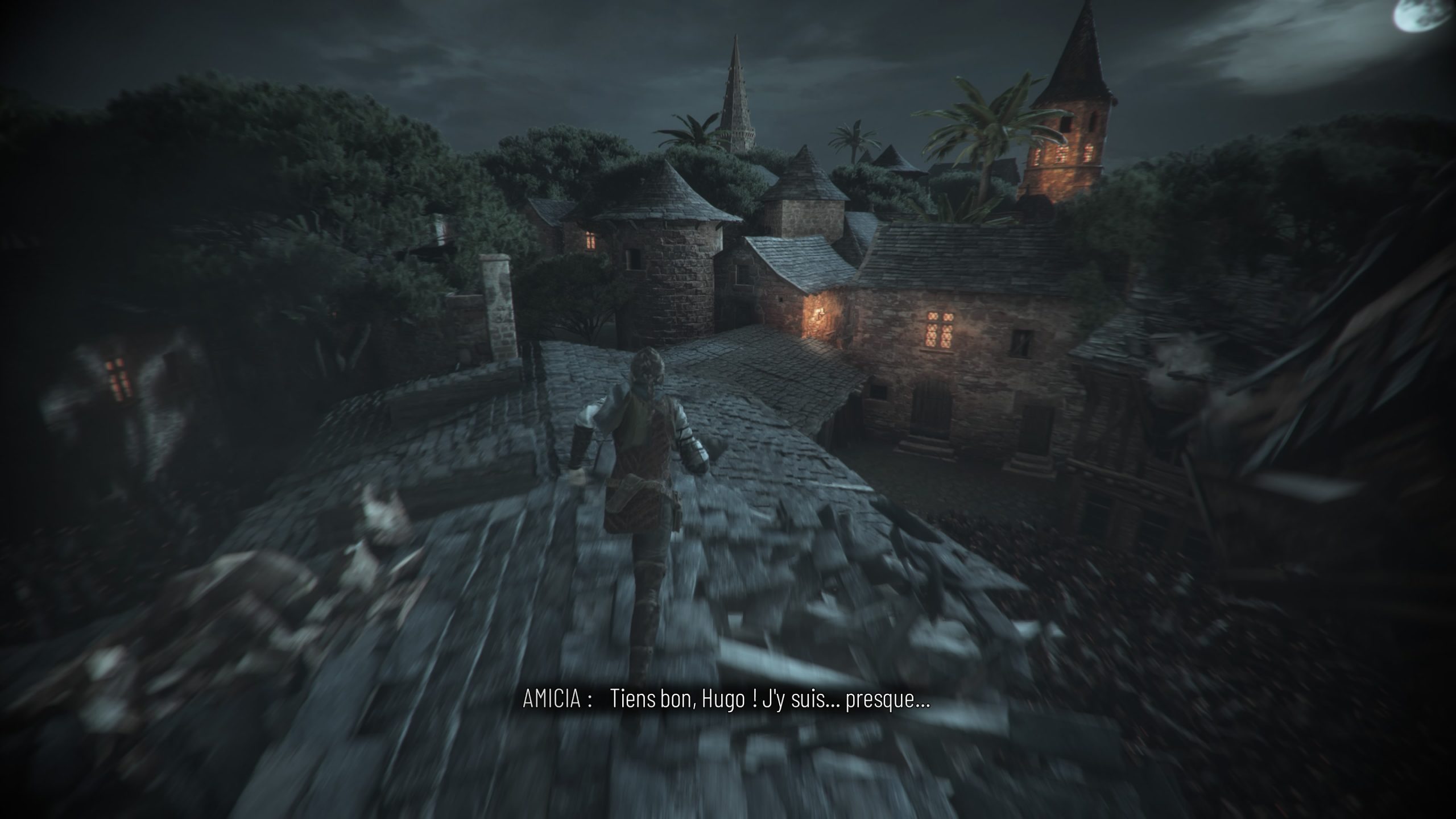 Pas vraiment fun. Citons également, même si cela est moins grave, un antagoniste tardif qui peut énerver par ses décisions stupides et égoïstes, mais bon, l’antagoniste final du premier jeu n’était déjà pas bien glorieux dans les faits, donc passons. Ces deux défauts, ils viennent abaisser le verdict d’un jeu qui, sinon, aurait été bien meilleur que le premier jeu, plus beau, plus maitrisé, plus sombre, et avec son lot de moments impactants, et même marquants pour des raisons diverses, et ce dès le début du jeu, avec cette fuite dans des champs que les ennemis enflamment, donnant après seulement 20 minutes manette en main une vision apocalyptique bienvenue, aidée par la musique toujours signée Olivier Derivière, décidemment toujours au top, et aimant les rats, après les deux Plague Tale ainsi que Vampyr pour Don’t Nod. Mais après tout, Derivière fait toujours un bon boulot, même lorsque les jeux déçoivent (Dying Light 2, Remember Me). Dire qu’il avait débuté en 2004 sur le jeu Obscure, que de souvenirs… Bref, ce genre de moments mémorables, les 16 chapitres du jeu en ont des tas, heureusement. Et c’est ce qui en fait un jeu au final peut-être plus marquant que le premier jeu, mais moins bien rodé de manière générale. Ambitieux oui, intéressant, plaisant, mais que l’on ne relancera pas immédiatement pour un second run qui pourrait amplifier ses quelques défauts. Bravo encore une fois à Asobo Studio pour en tout cas avoir réussi à livrer une copie aussi propre, malgré quelques rares soucis de pathfinding (merci Lucas de m’avoir bloqué contre une porte face à des rats). A voir maintenant le prochain jeu qu’ils vont développer, dans le même univers, mais en nous faisant jouer Sophia.